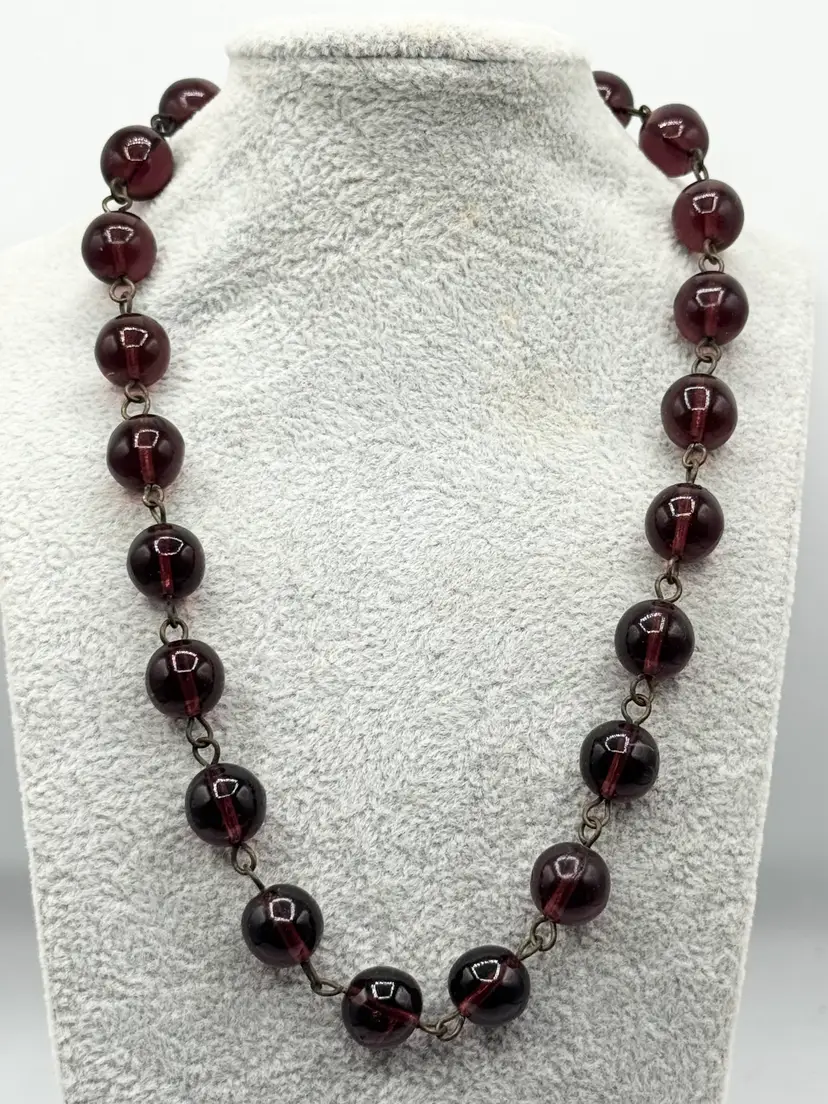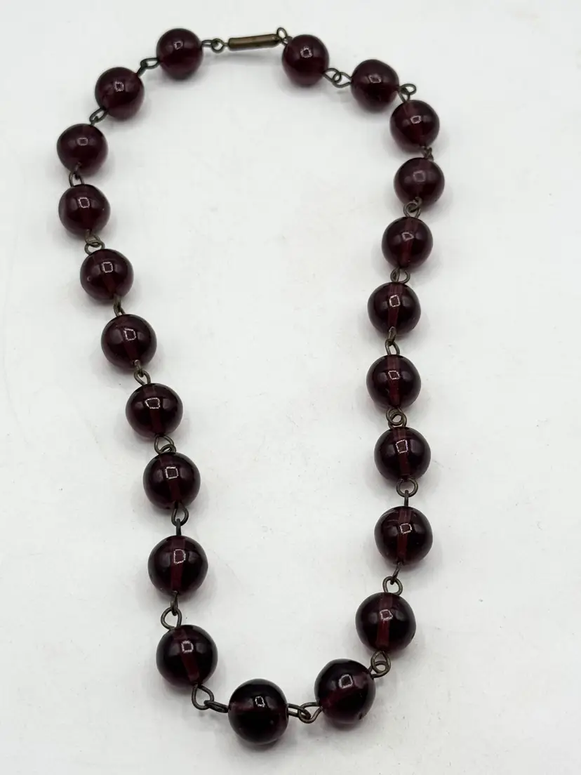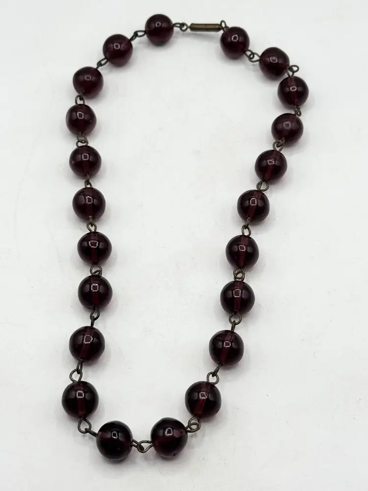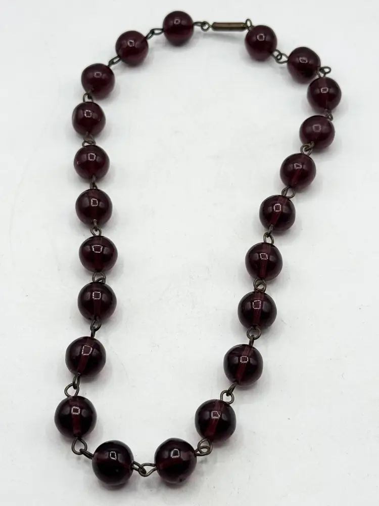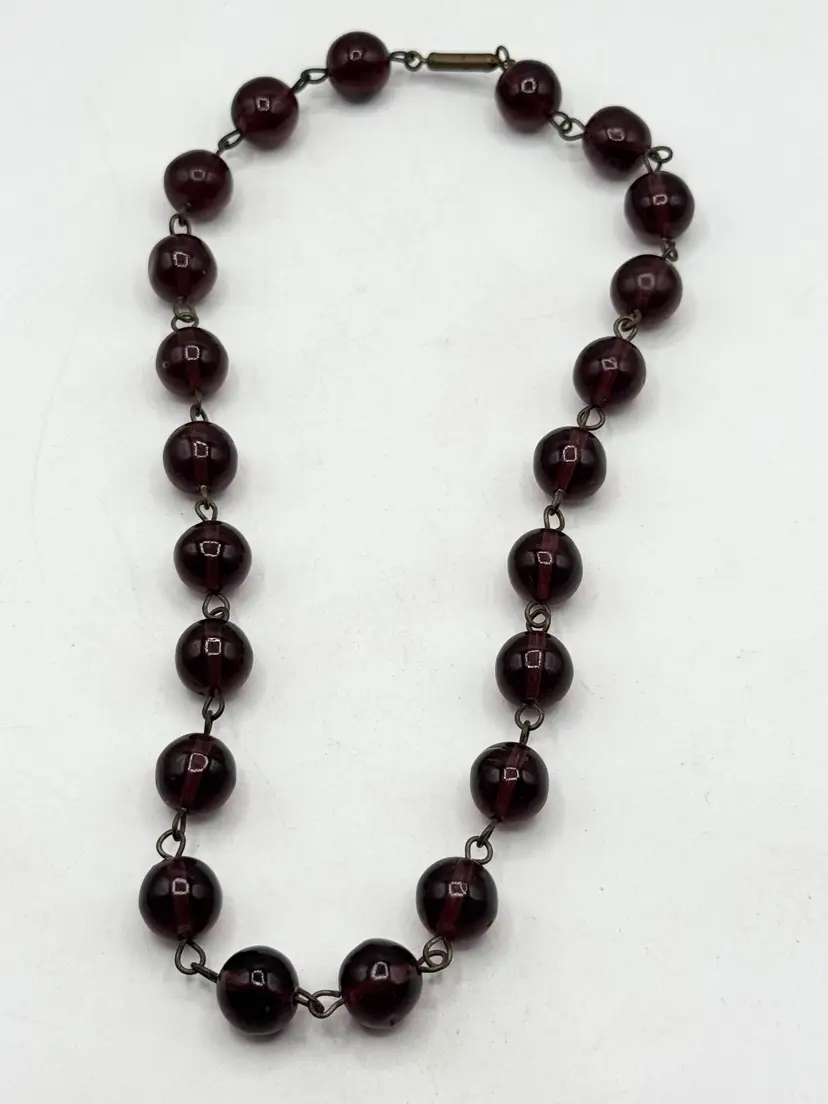 Estate purple glass beaded chain link necklace. Estate purple glass chain link necklace. Push in clasp. MN56HG.