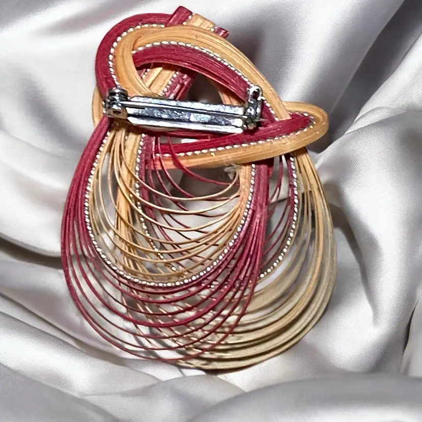 Excellent condition This vintage jewelry is a unique addition to any collection. The handmade brooch pin is crafted from bamboo, giving it a natural and rustic feel. The colors of the bamboo adds to its charm and makes it a perfect accessory for any outfit. The jewelry-is fashionable, and it is a perfect addition for anyone who loves vintage and antique jewelry. The metal purity is unknown,but the quality of this brooch pin is undeniable. It is a must-have for anyone who loves collecting vintage jewelry.