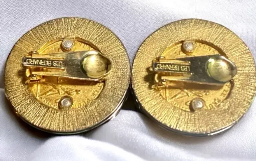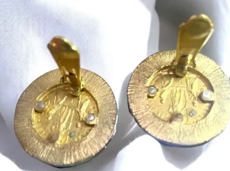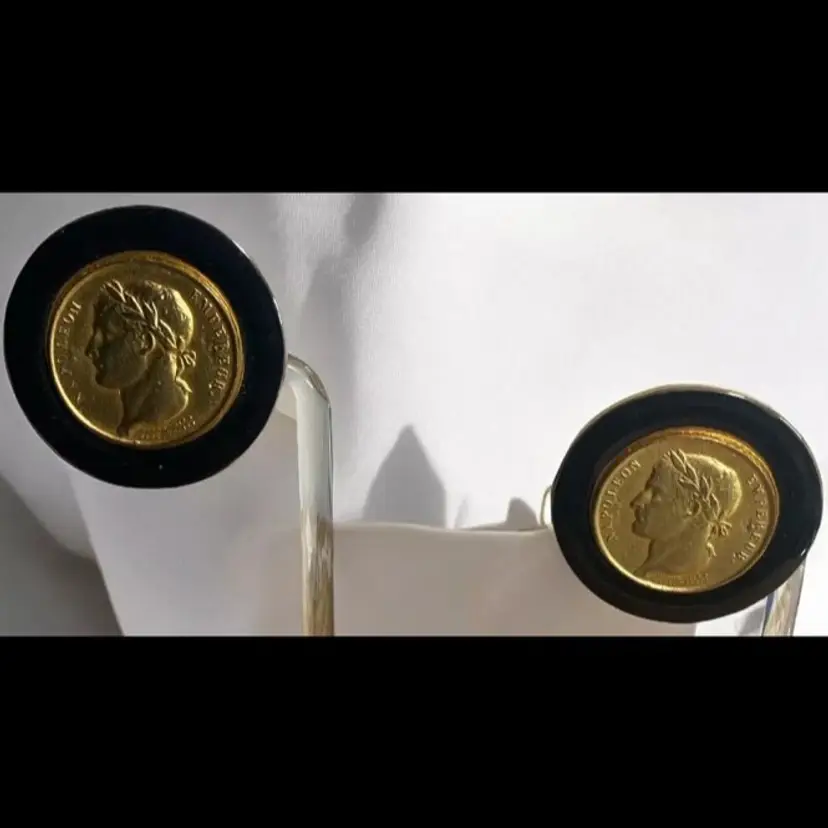 Add a touch of vintage charm to your outfit with these stunning Les Bernard earrings. The black enamel along with real coins feature intricate details and a clip-on closure for easy wear. These earrings are perfect for any occasion, whether it's a special event like Mother's Day or an everyday accessory. Very well made