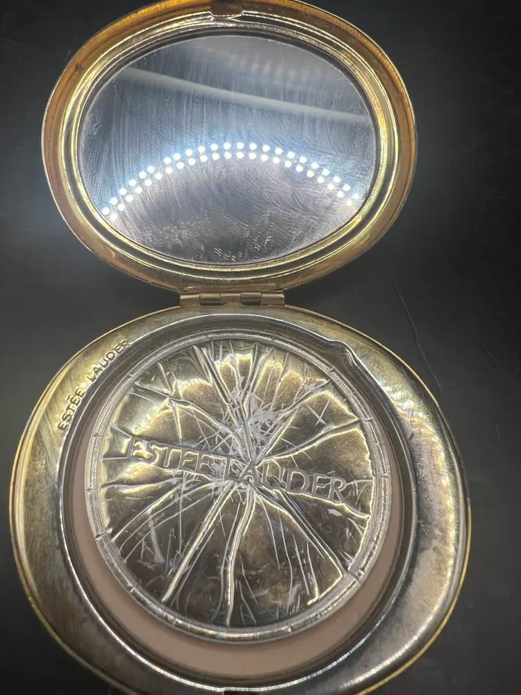 VTG Estée Lauder “spirit of the wind “ Gold tone compact with powder and powder puff Estate condition Collector piece