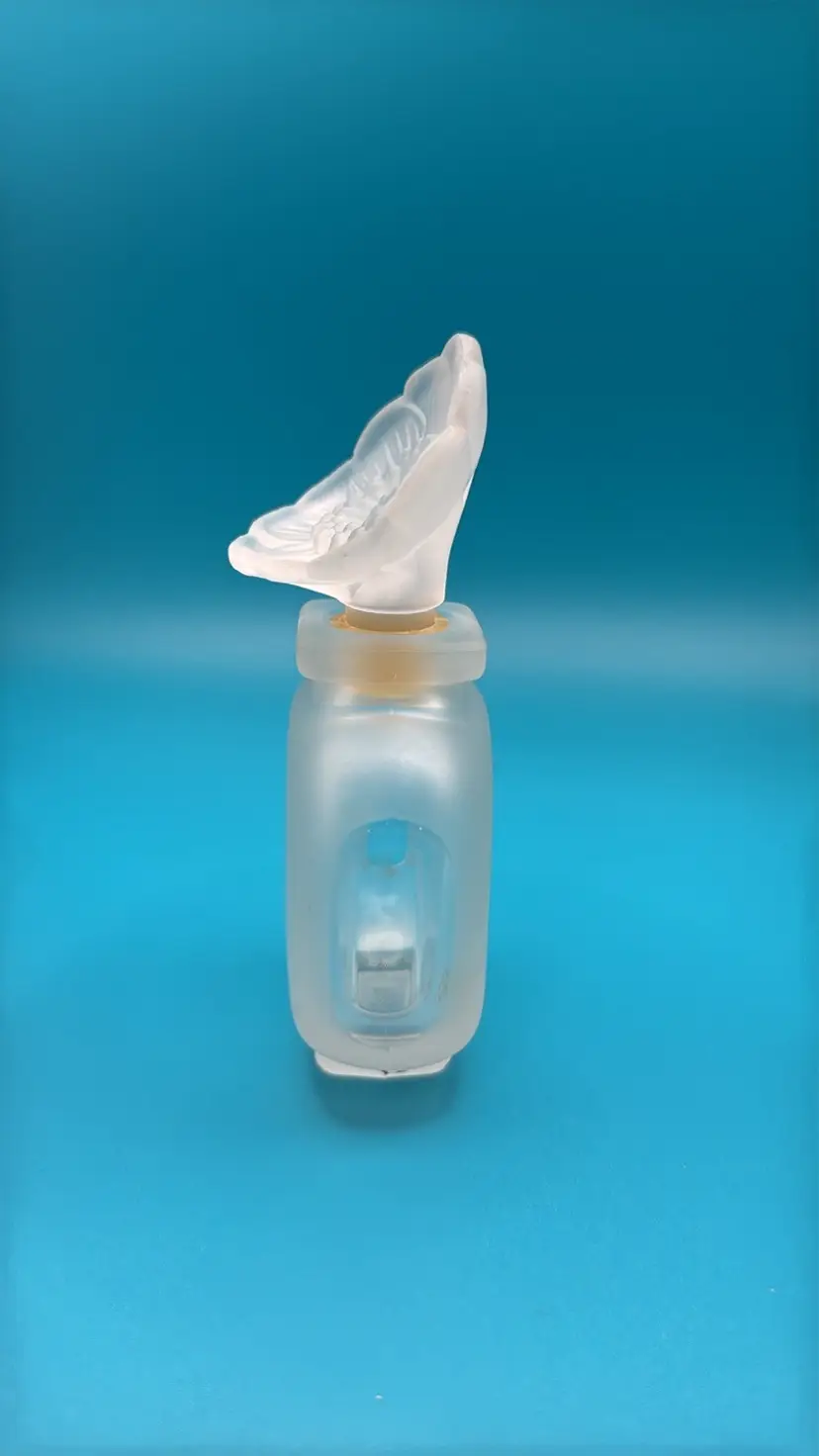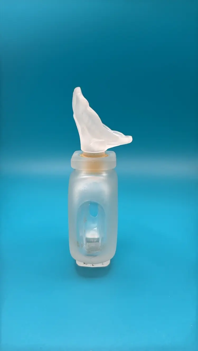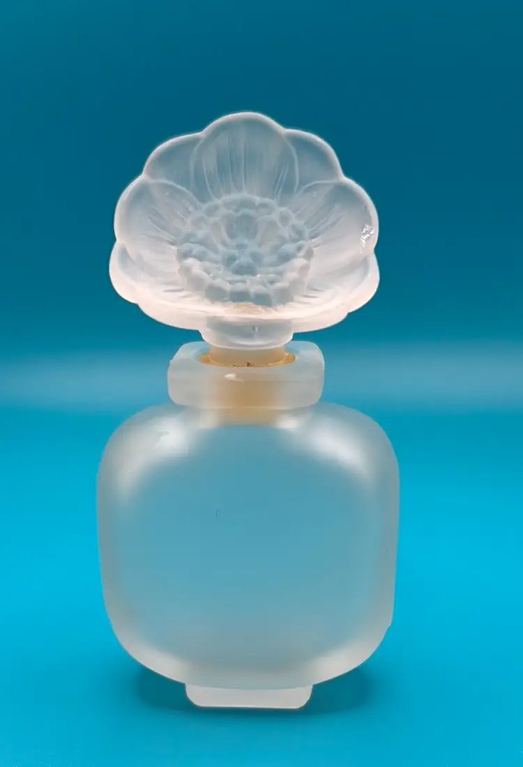 Estee Lauder Youth Dew Lalique with Frosted Glass Flower Stopper Flacon Bottle. Made in France. Empty. Perfect for adding a touch of sophistication to your bath and body collection. 4.25” tall Excellent condition with no breaks or chips (41742525a)