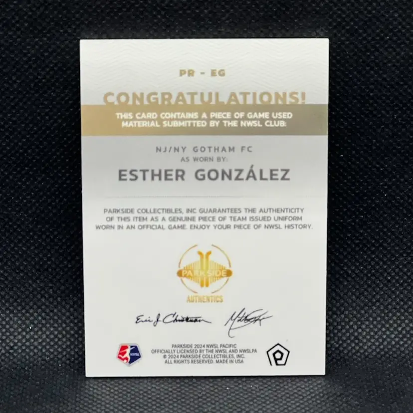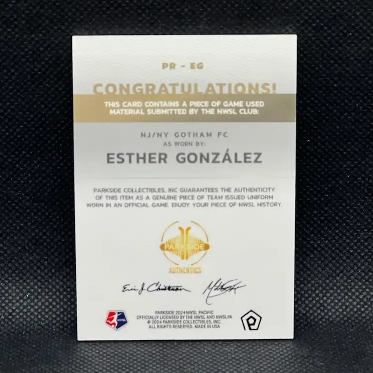 Esther Gonzalez 2024 Parkside Pacific Relic Gotham FC Soccer Card (A)