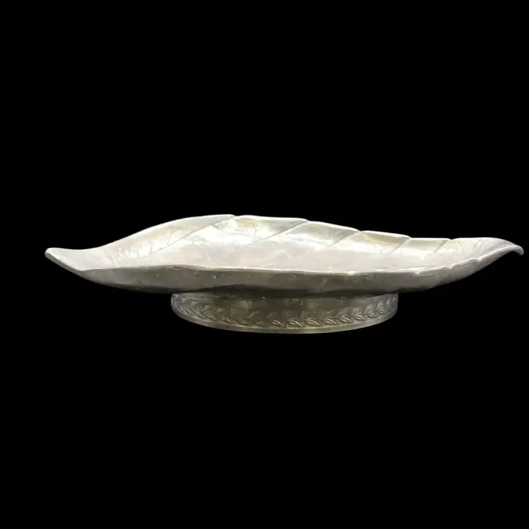 Elegant metal dish with intricate leaf design. Perfect for decor or serving small items. sku:a2
