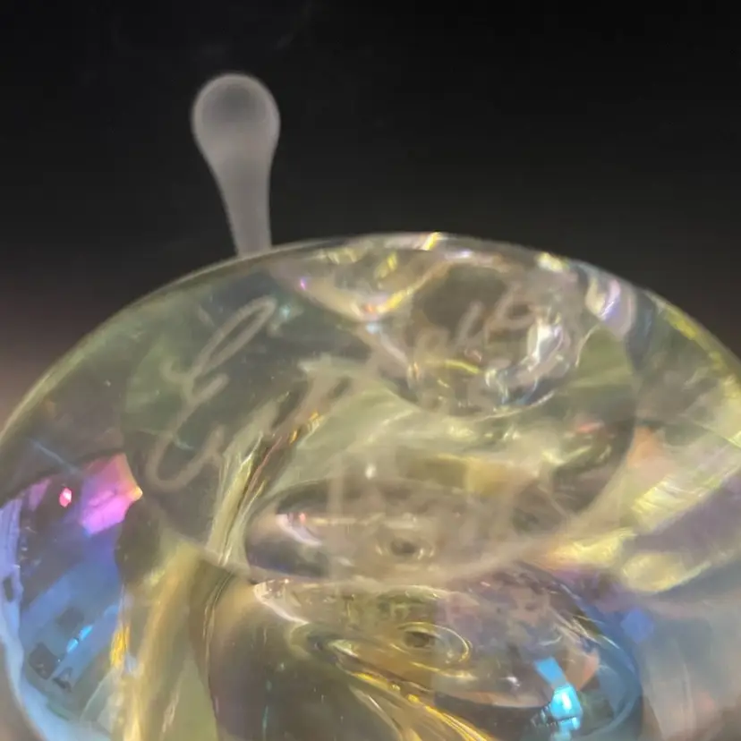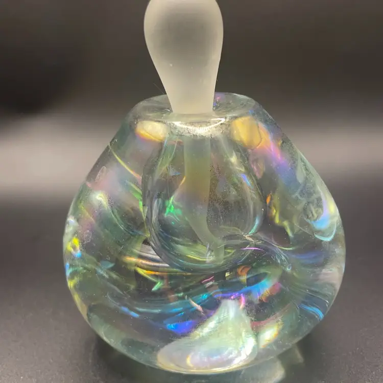 Glass stopper no chips or cracks. Robert Eickholt (born 1947) is a well-known American glass artist who founded Eickholt Glass in Columbus, Ohio, in 1978. He is recognized for his hand-blown art glass creations, which include paperweights, vases, sculptures, and perfume bottles.