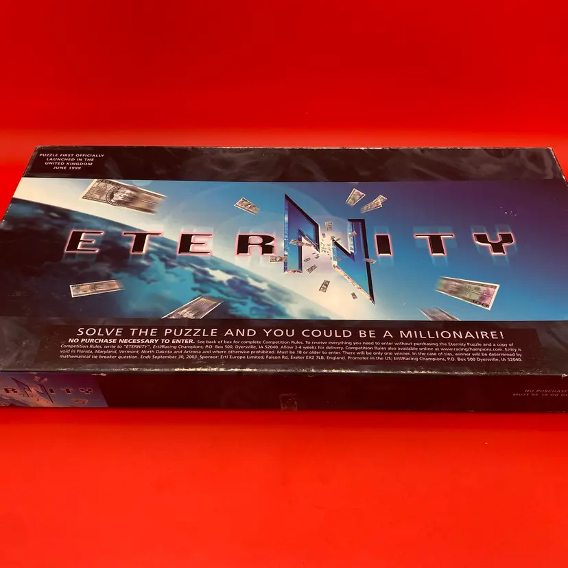 You are purchasing one Eternity 209-Piece Skill and Competition Puzzle by ERTL and Christopher Moncton from 1999. The Puzzle is complete and pieces and board are in excellent condition with minimal signs of wear. Box has minor wear.