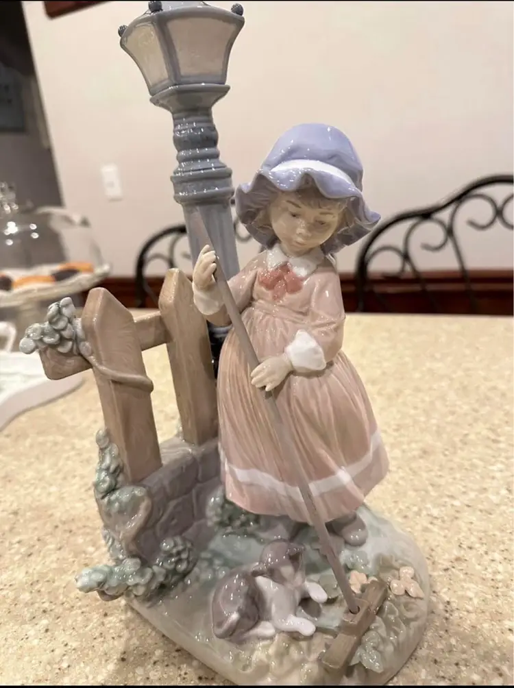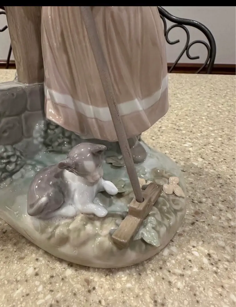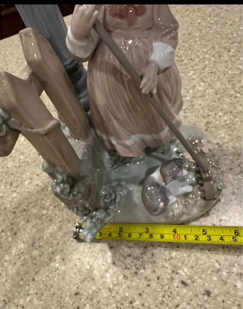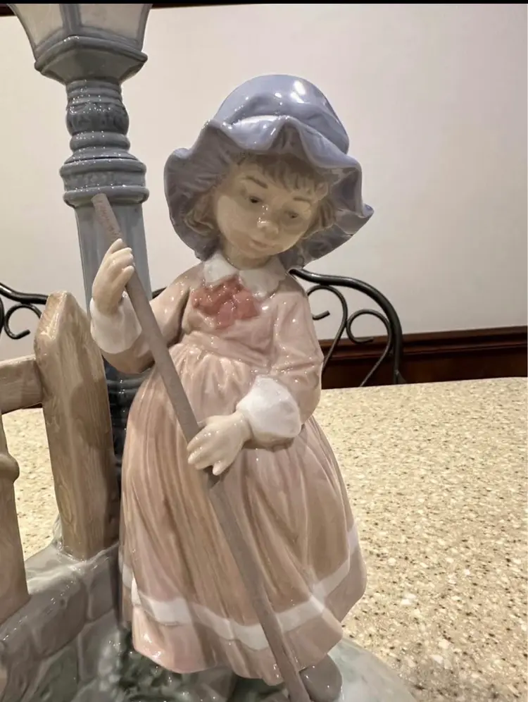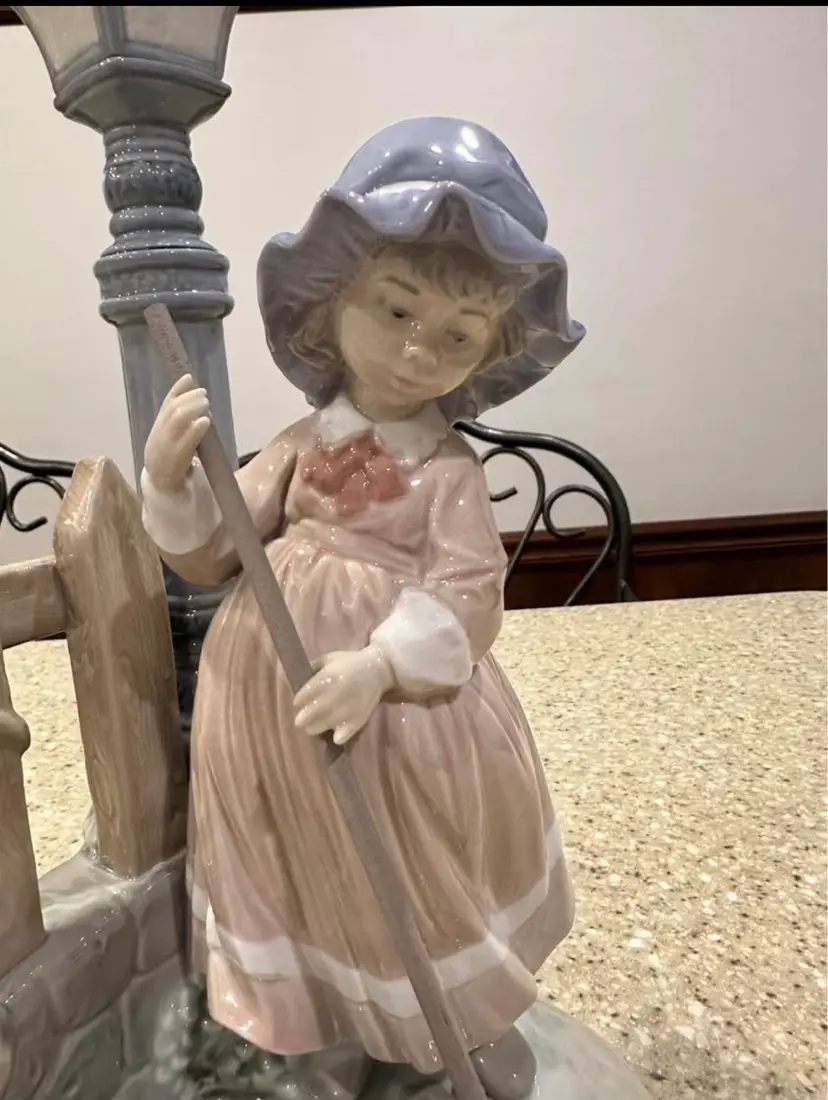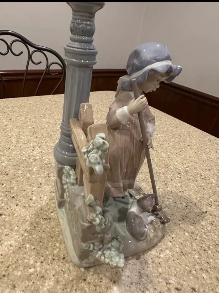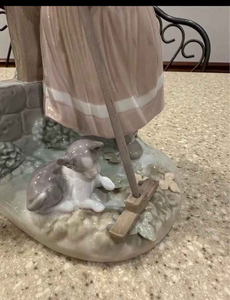 This beautiful figurine from Lladró is a stunning addition to any collection. The intricate details and high-quality porcelain material make it truly special. With its retired status, it is a rare find for collectors. The figurine depicts the scene of Fall Cleanup, with a woman and child sweeping up leaves. It is in excellent used condition and has been well cared for. This piece will surely add a touch of elegance to any home decor. Cross posted.