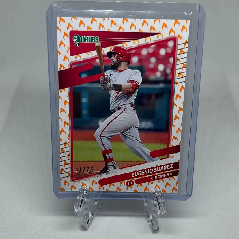 Eugenio Suarez 2021 Panini Donruss /75 Cincinnati Reds Flames Variation