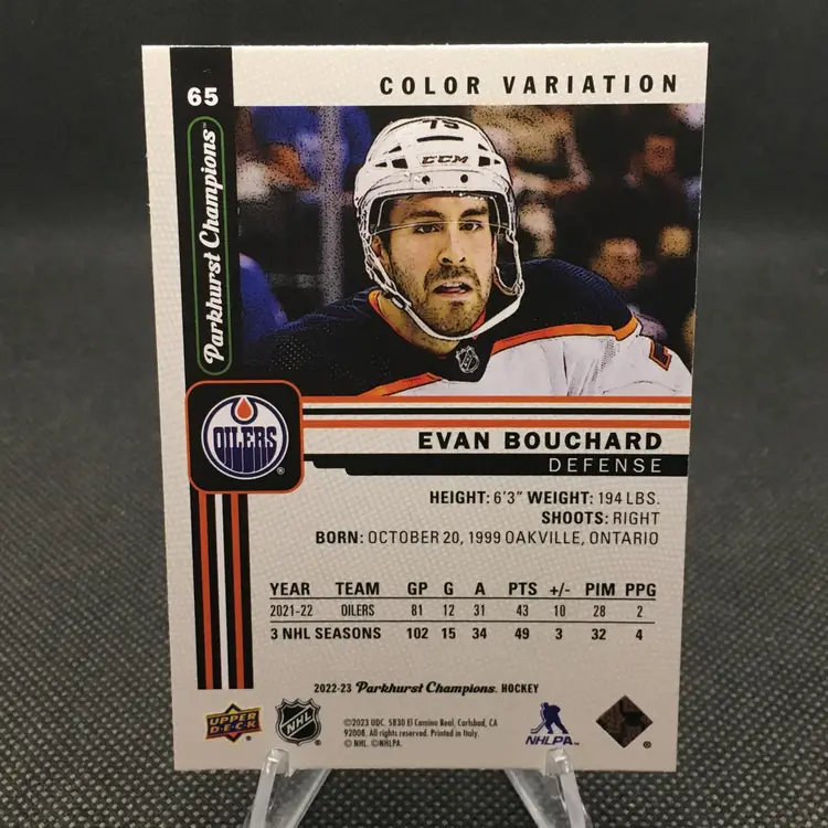 Evan Bouchard 22-23 Parkhurst Champions Color Variation #65 - Edmonton Oilers