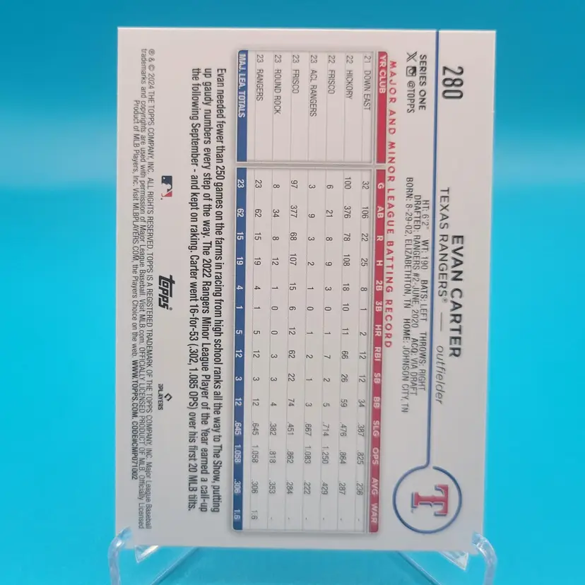 Evan Carter RC 2024 Topps. NM or better condition. Shipped PWE.