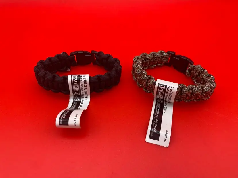 You are purchasing a pair of 9 Inch Paracord Bracelets by Everbilt. This Listing includes one Black and one Grayish Brown Bracelets. Both are brand new with Tags.