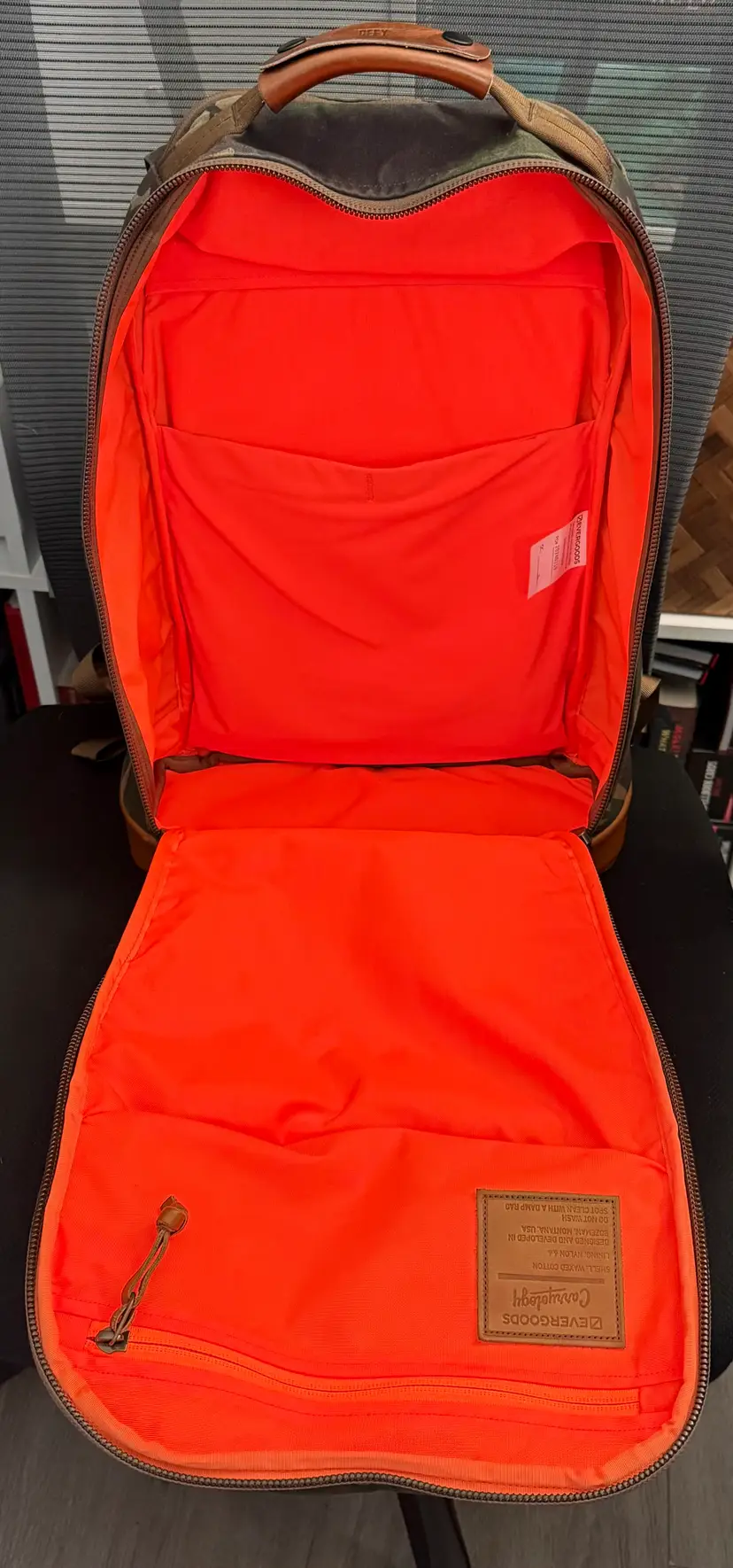 Selling my Evergoods CBB22. This is the limited edition collab with Carryology (codename "Griffin 2") in woodlands camo waxed canvas. It is a beautiful and unique bag that is currently unavailable through Carryology or Evergoods. The bag will also come with a color-matched custom leather handle wrap from Defy.