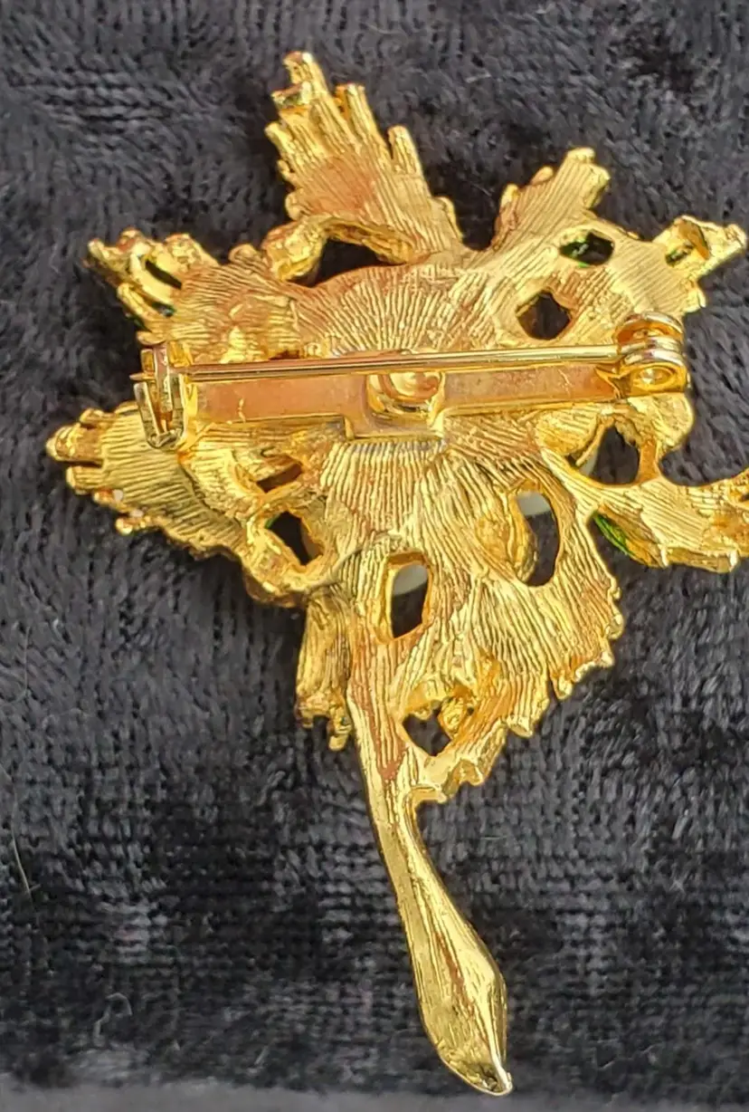 This nice little vintage pin combines spiky evergreen needles with three faux pearls and three rhinestone rubies. There is a nice contrast between the spiky and the round parts of the pin.