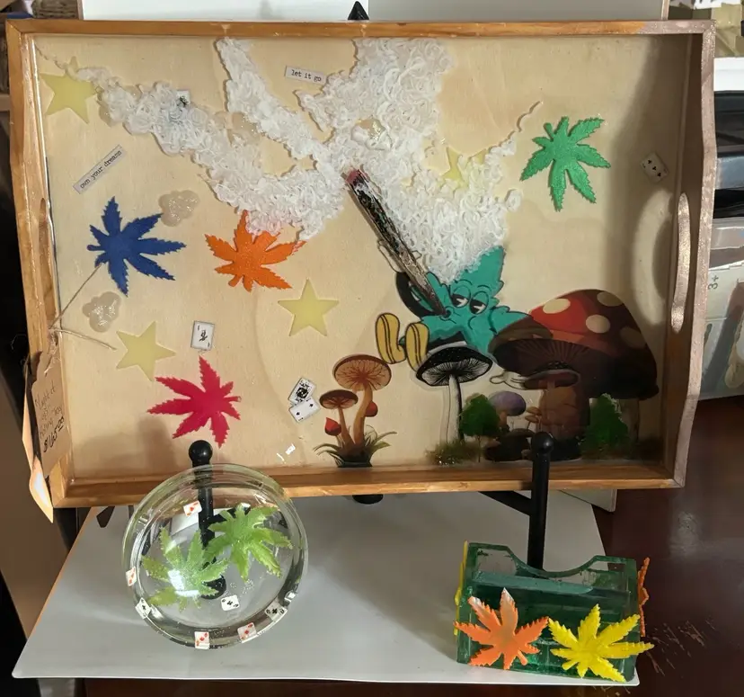 “Everything’s Smoking!” tray is a nod to my 420-influential family.