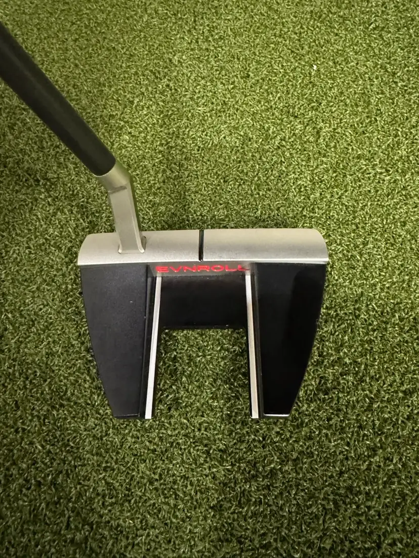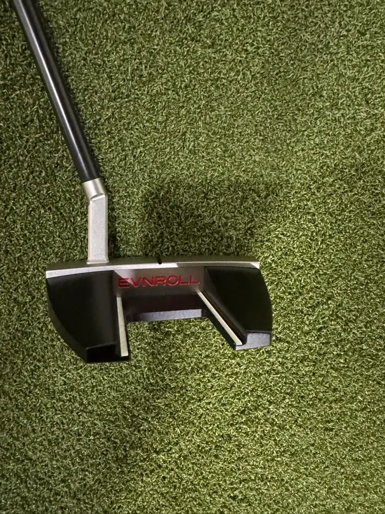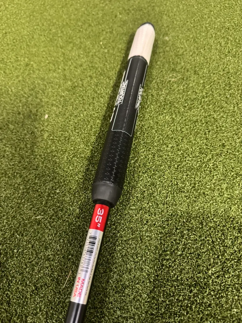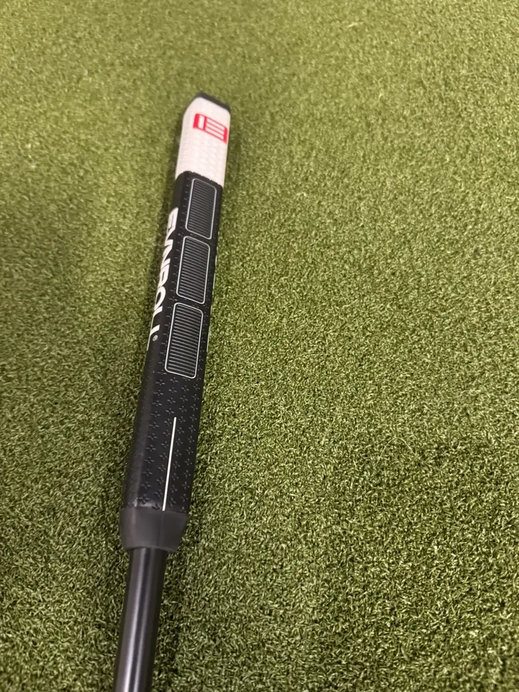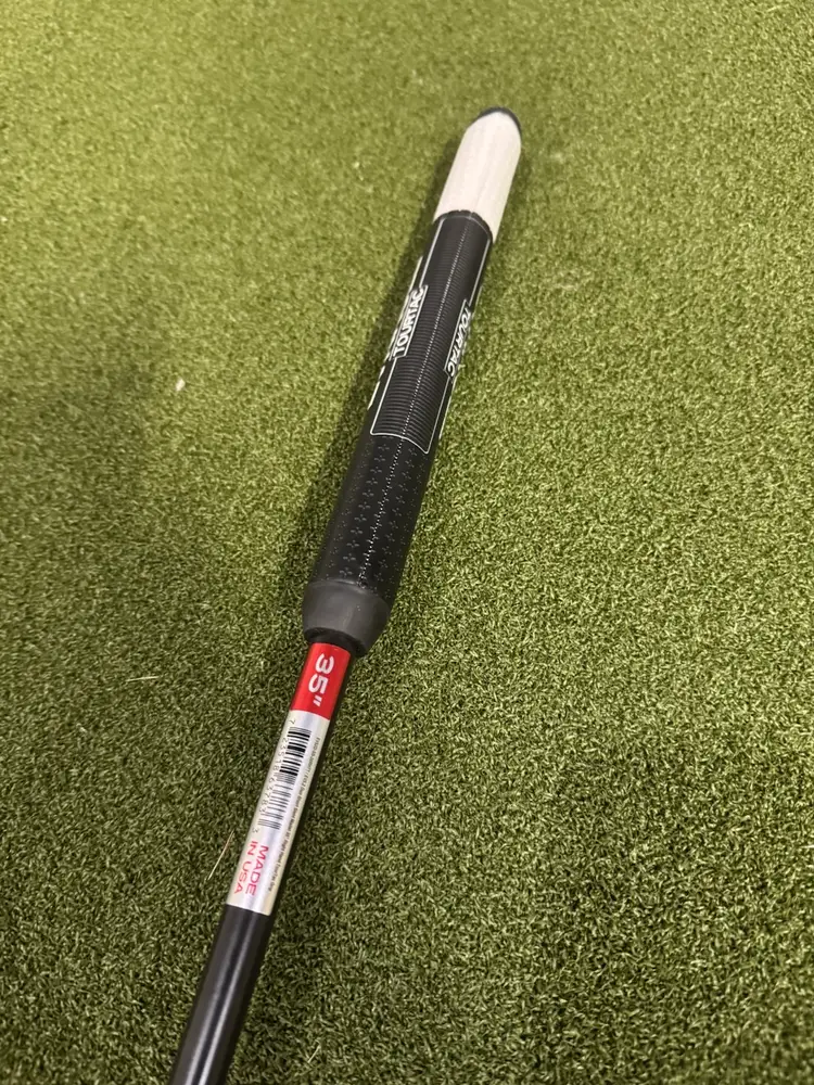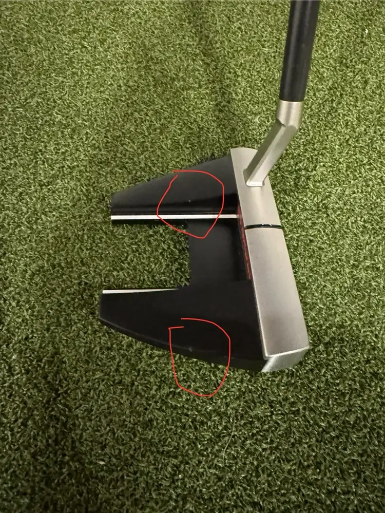This putter was used for demonstration purposes only and is basically brand new never seen the outdoors. There are two tiny blemishes that I corcled on the pictures from something falling on it at the shop can, hardly notice.