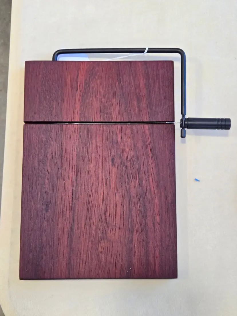Stylish cheese slicer crafted from exotic wood with a sleek metal handle. Perfect for entertaining and everyday use. Free Shipping. 10"x7"