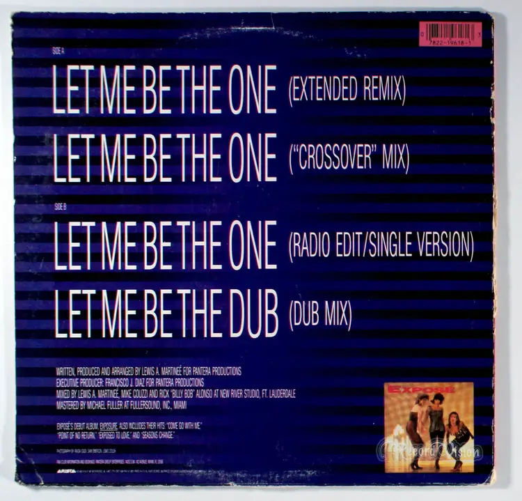 Released as a single in 1987, Let Me Be the One became the Exposè's third consecutive top-ten single on the Billboard Hot 100 chart, when it peaked at No. 7. The freestyle girl group Exposé, included the song on their debut album, Exposure. The lead vocals on the song were performed by Gioia Bruno. The song also reached No. 2 on the Billboard Hot Dance Club Play chart.