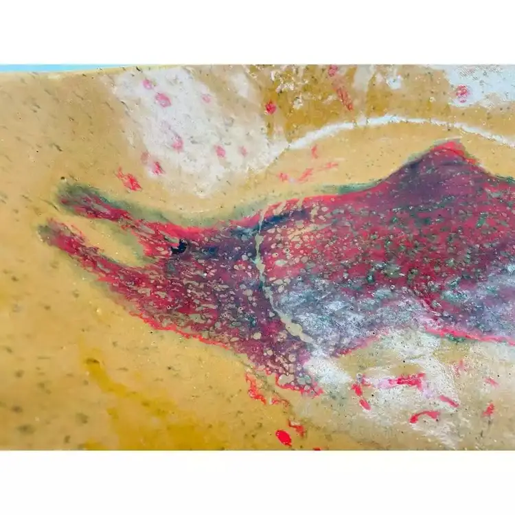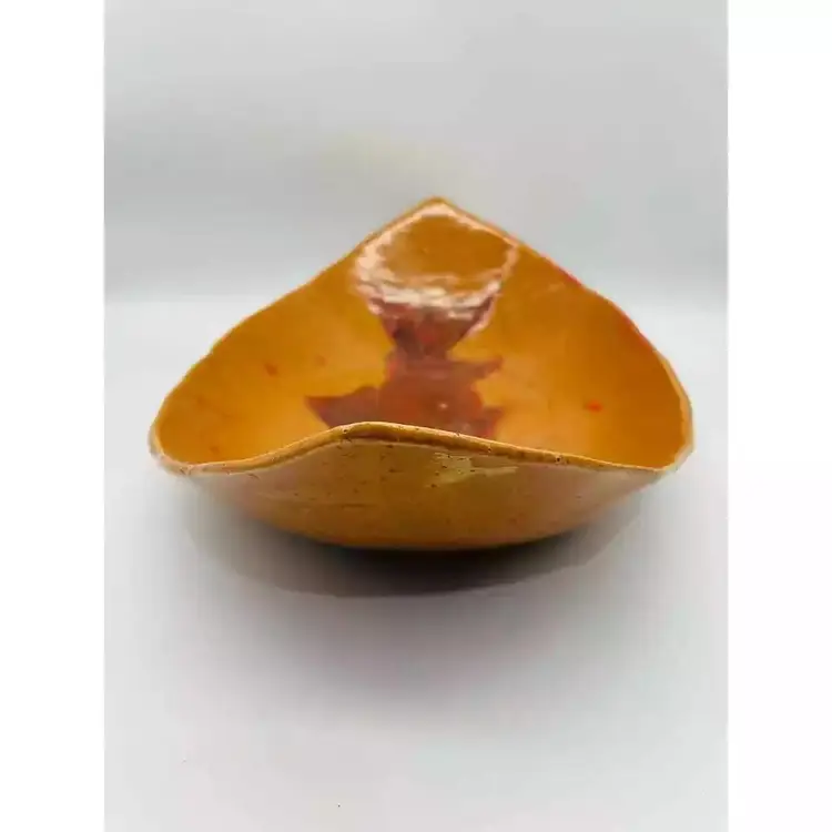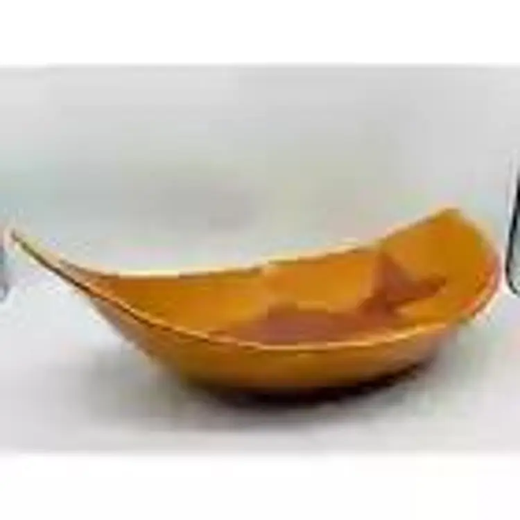 Extraordinary boat shaped pottery platter centerpiece with a sockeye salmon redfish design. Hand thrown and painted. Dimensions: 16” length, 10.5” width, 2-4” deep.