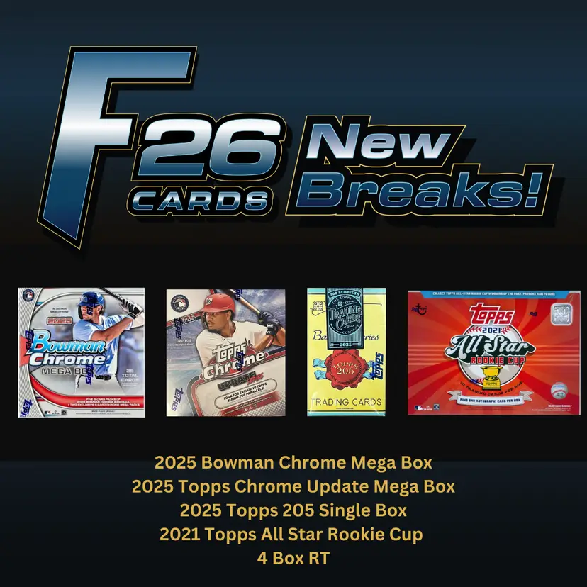 This live rip contains the following boxes: (1x) 2025 Topps Chrome Update Mega Box (1x) 2025 Bowman Chrome Mega Box (1x) 2025 Topps 205 Single Box (1x) 2021 Topps All Star Rookie Cup Box
