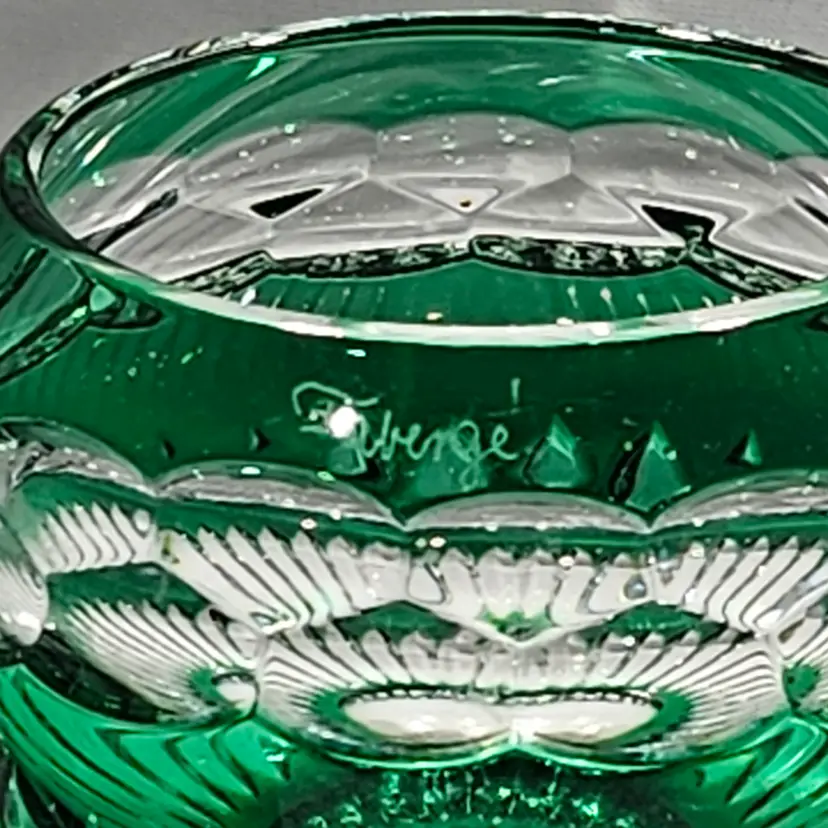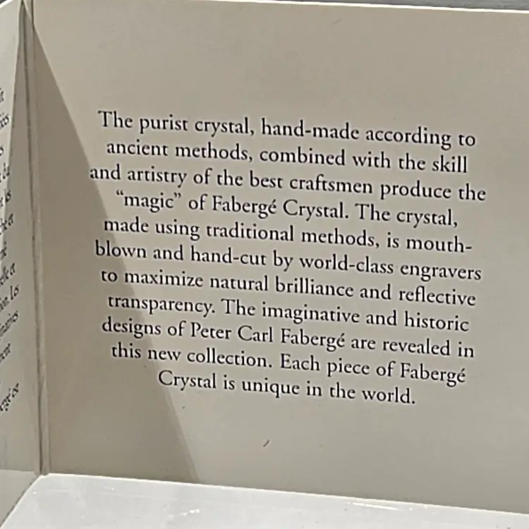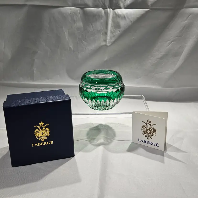 A beautiful piece of Faberge Signed with the Faberge mark No chips, nicks, or cracks In original box and original paperwork Please see photos for size and additional details