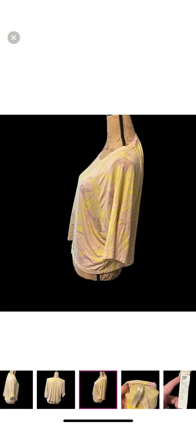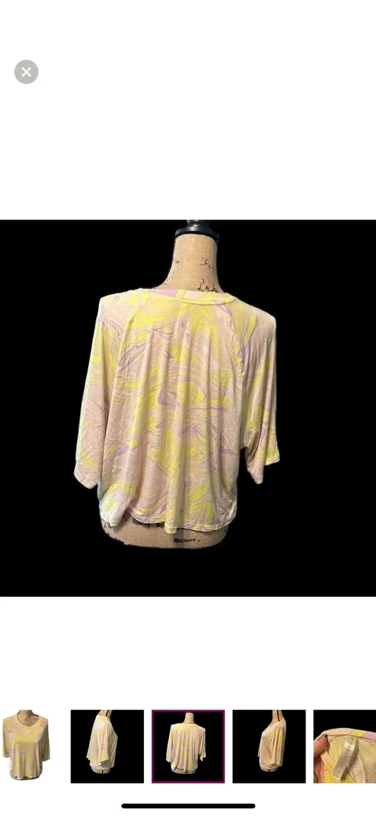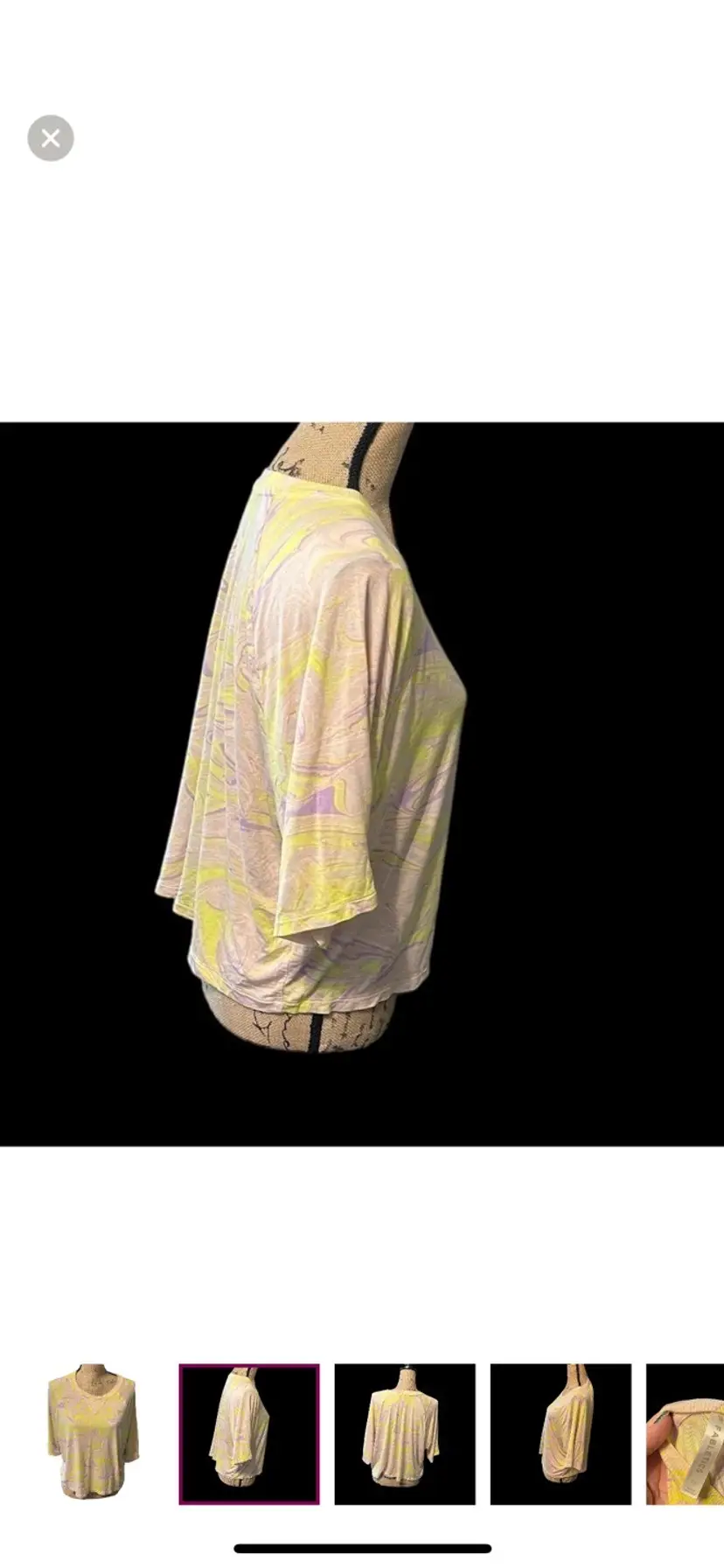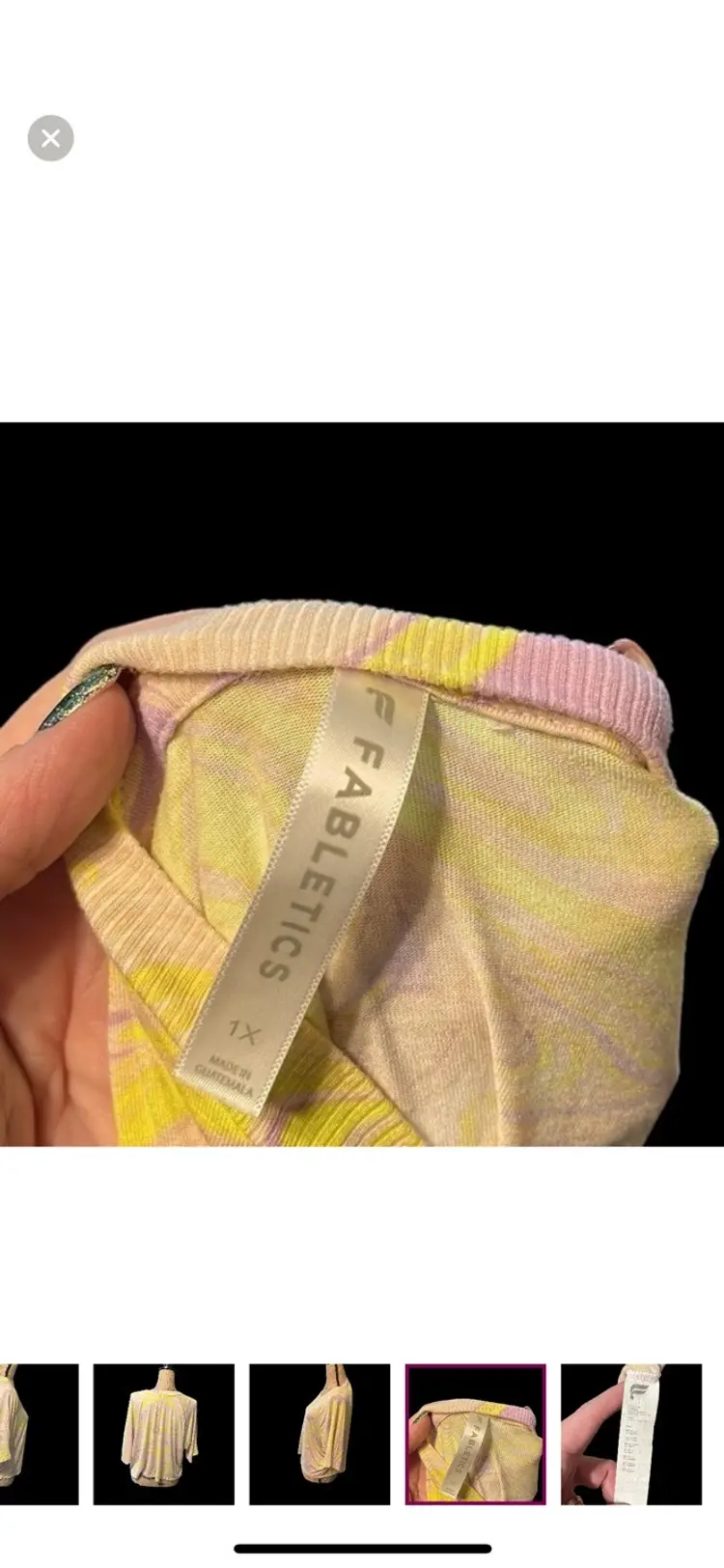 Fabletics neon swirled yellow and purple print tee. Super soft and stretchy. Size 1X