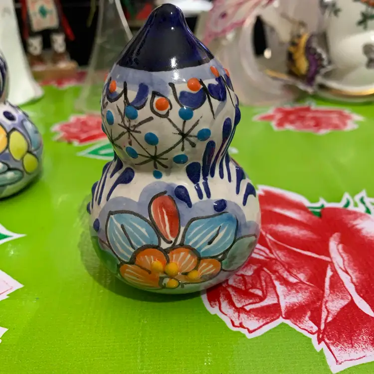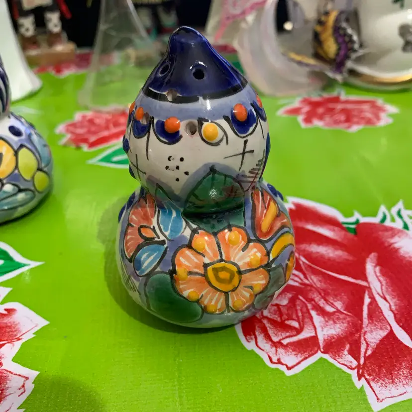 Origin: Talavera pottery originated in Talavera de la Reina, Spain, but the Mexican version, known as Talavera Poblana, developed in Puebla, Mexico in the mid-16th century. Material: It's made from a mixture of light, rose-colored clay and darker clay found in the Puebla region. It is a type of majolica or tin-glazed earthenware with a white base glaze. o Design: Talavera pottery features hand-painted designs with intricate patterns and bright colors. The designs often blend indigenous and European influences.