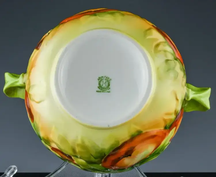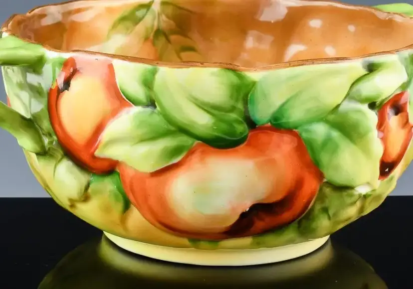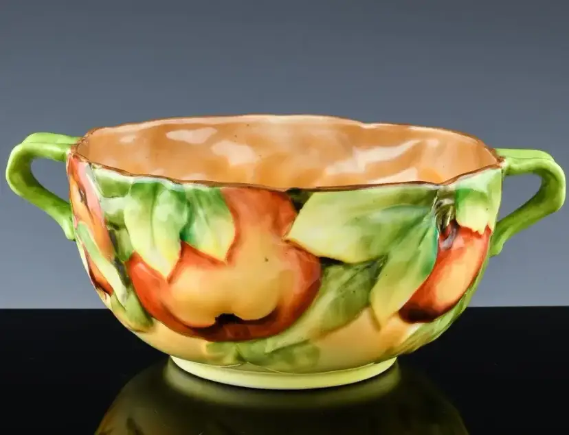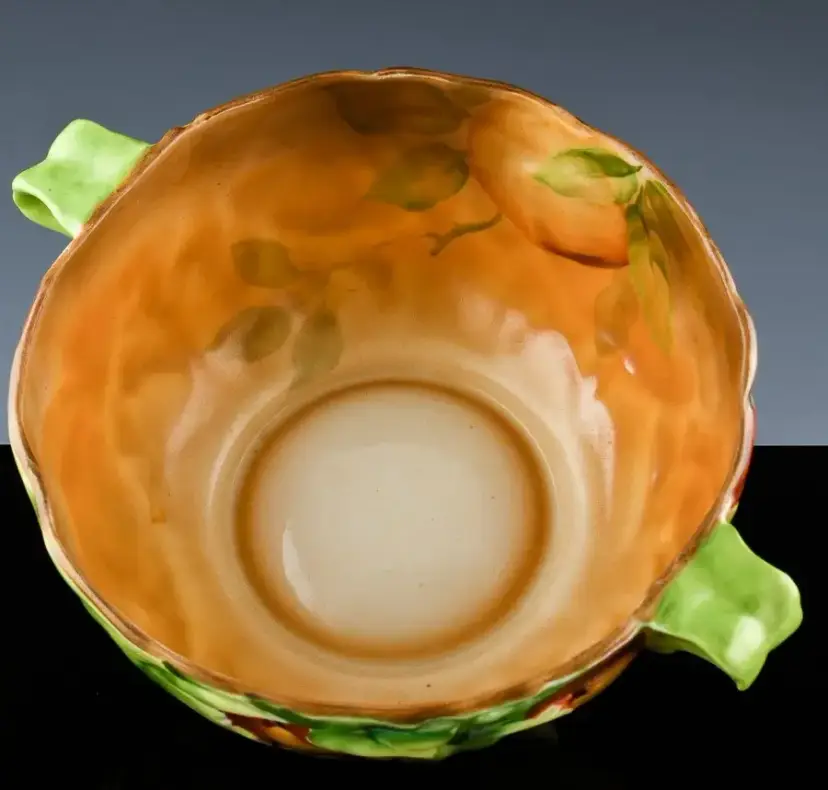 Presented for your consideration is a Superb quality Antique Noritake Porcelain Bowl. I have personally never seen another like this with the blown out Apples designs which are finely and completely Hand Painted. Also love the leaves which also form the double handled design. Believe this may be a rare find, grab it before it is gone !