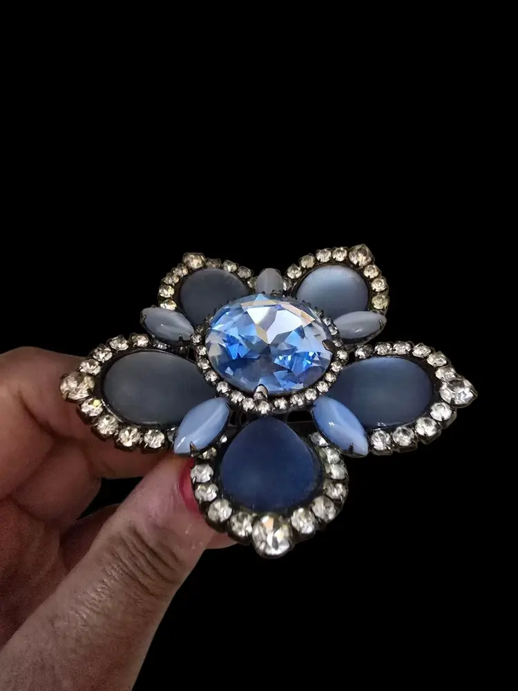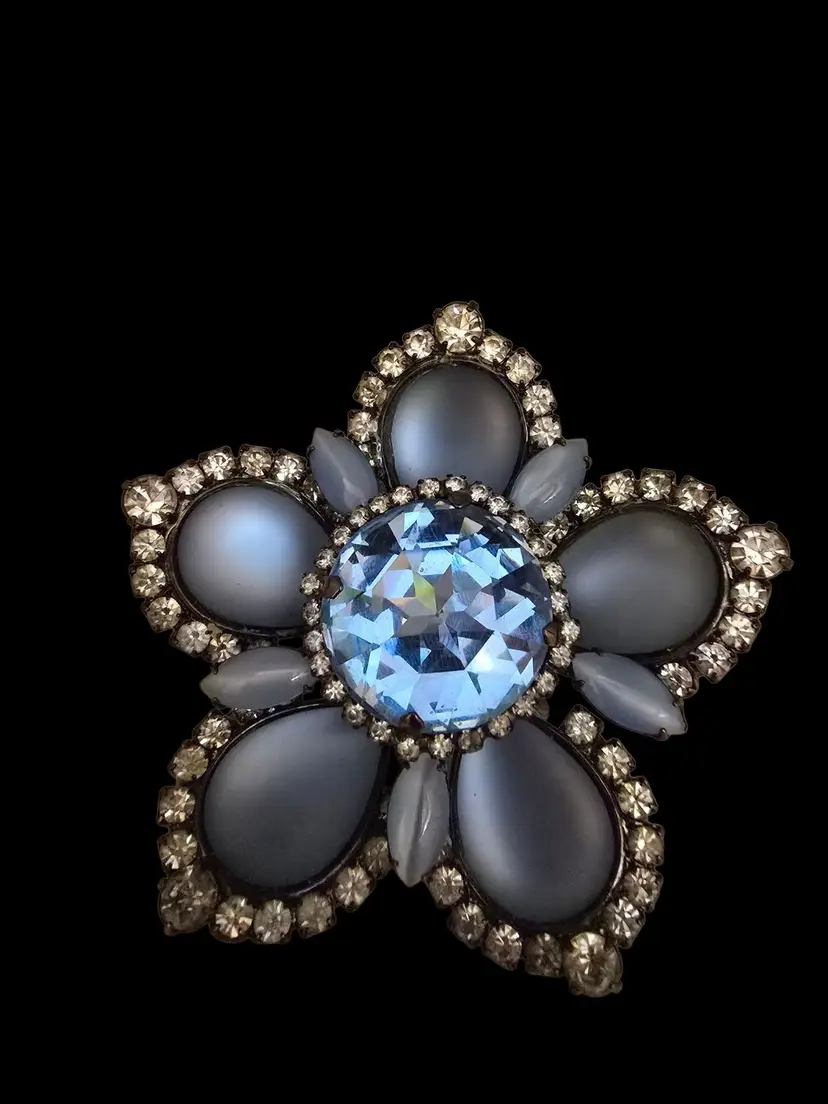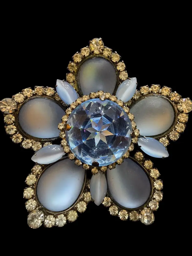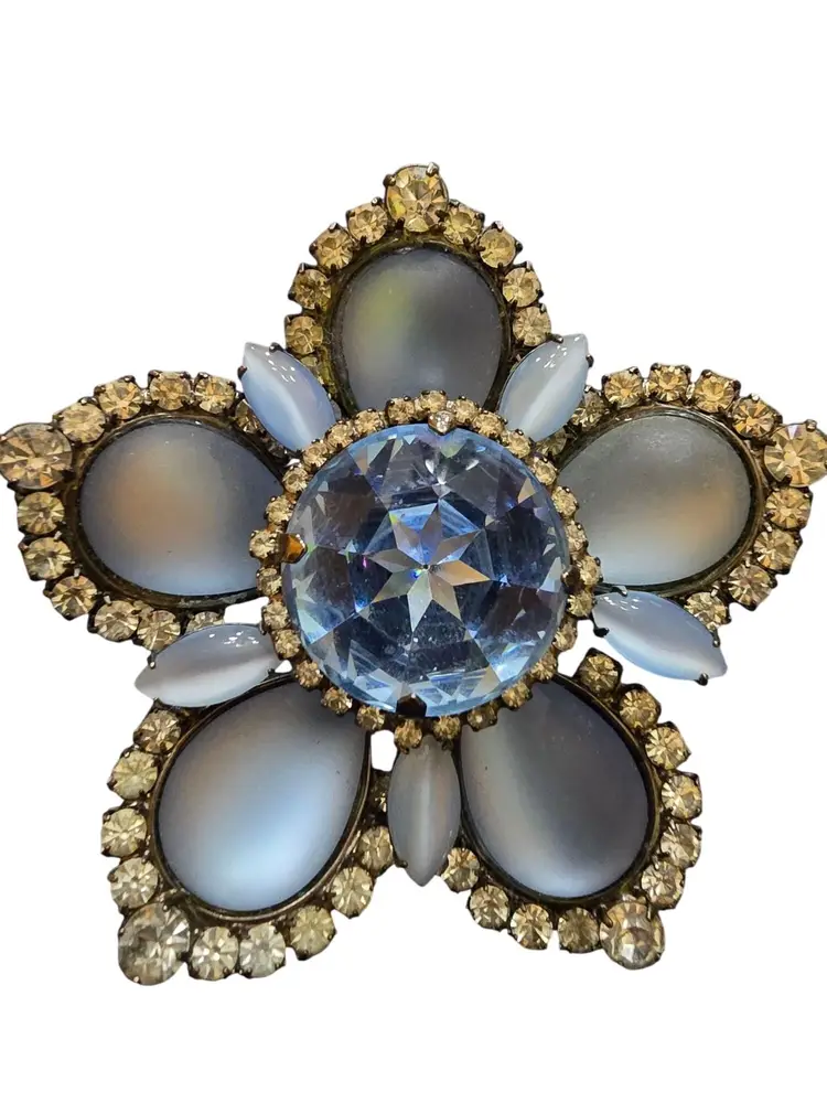 Fabulous Dimensional Glass and Rhinestone NOS VRBA Flower Brooch (A8739)