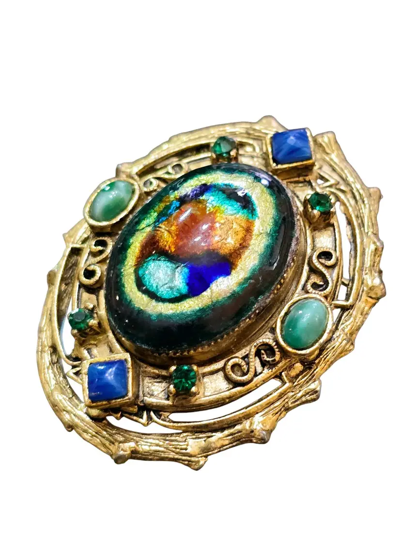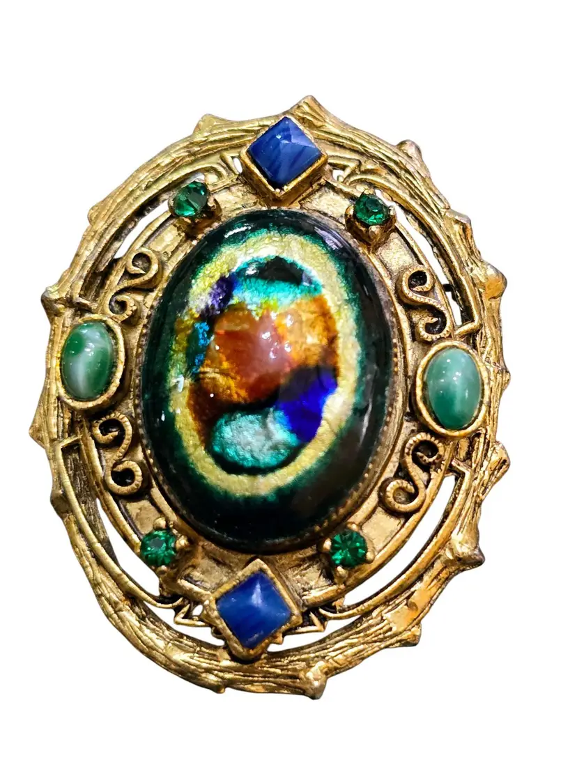 Fabulous Etruscan HATTIE CARNEGIE Foil Glass Pendant or Brooch (A7390)
