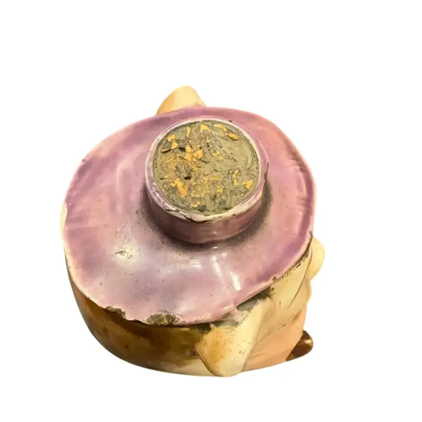 Old jug with broken stopper. Given to old whisky and wines and cigars by Hugo Bilz. Measures 3”x 3”. Made of porcelain. Has a lot of vintage wear.