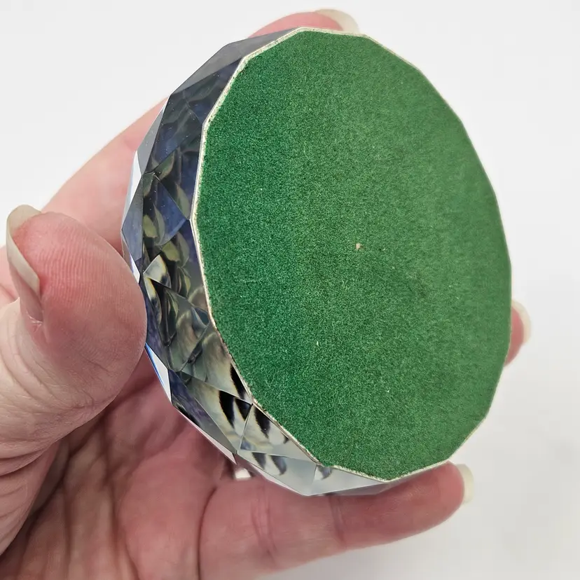 Faceted Crystal Glass & Chickadee Birds Paperweight