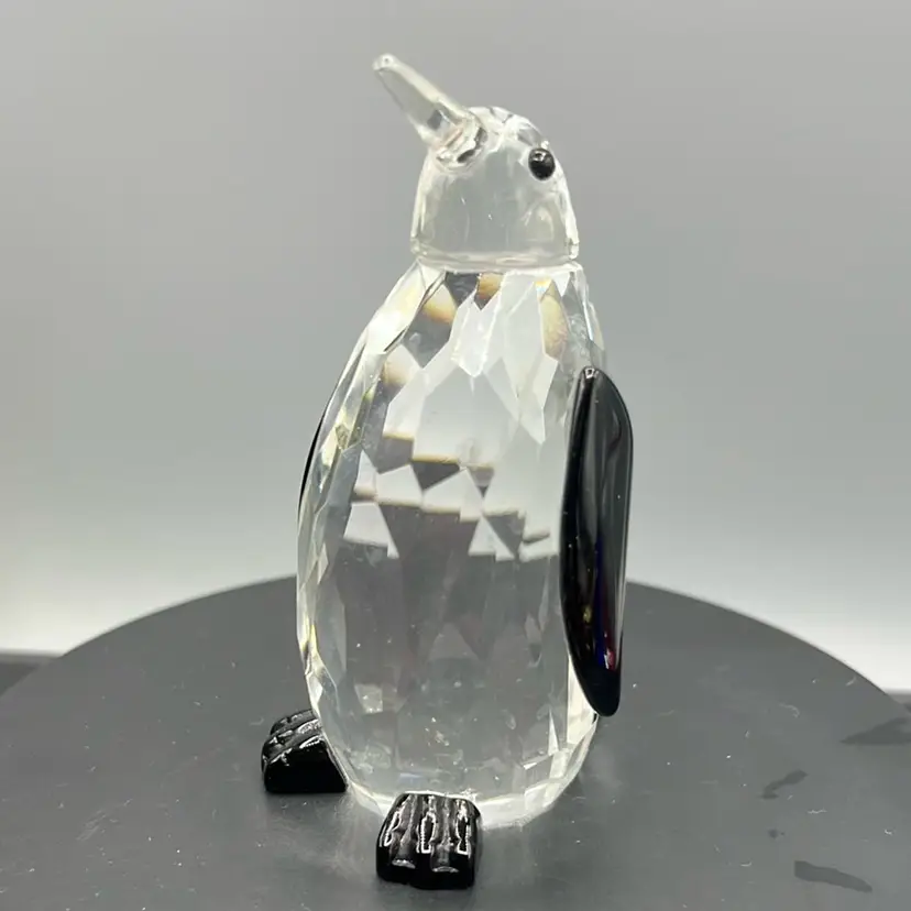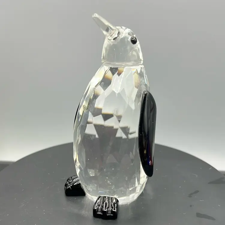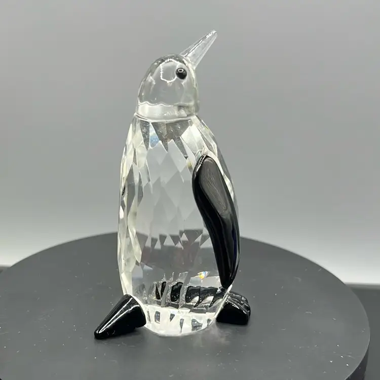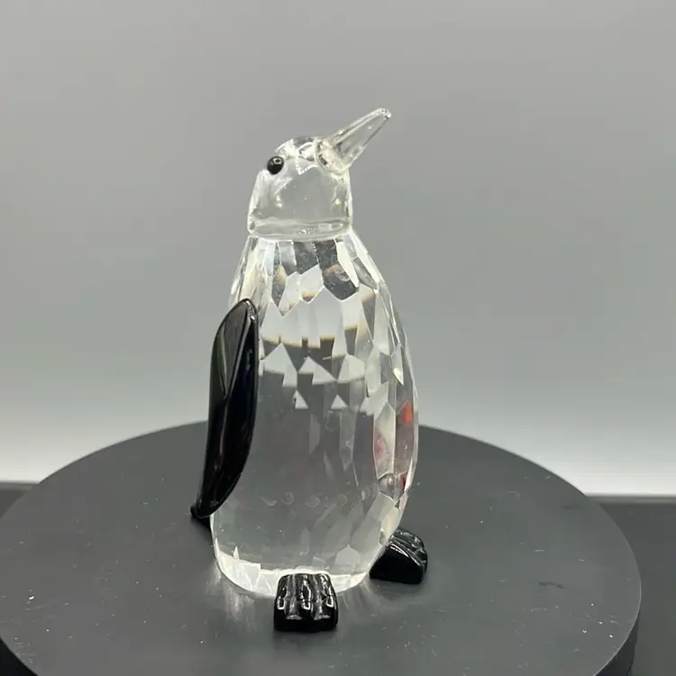 Faceted Glass Penguin Bird Black Wings Feet Crystal Prism Figurine Paperweight