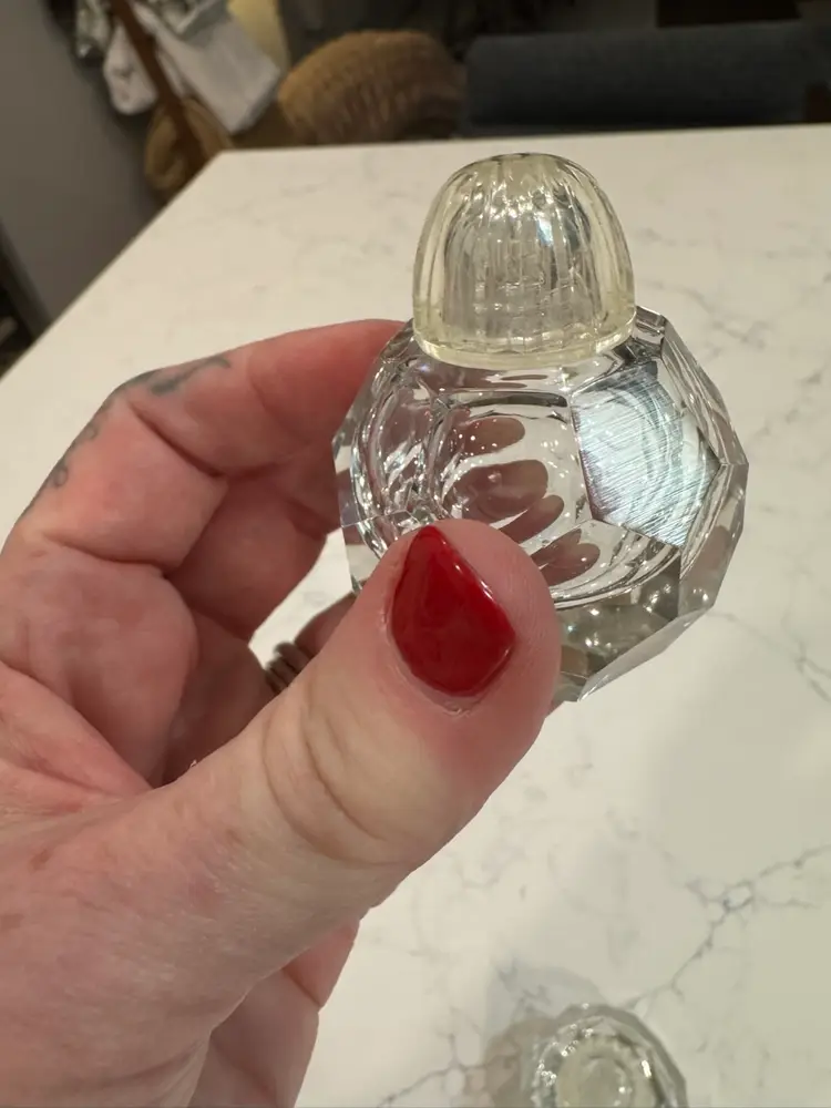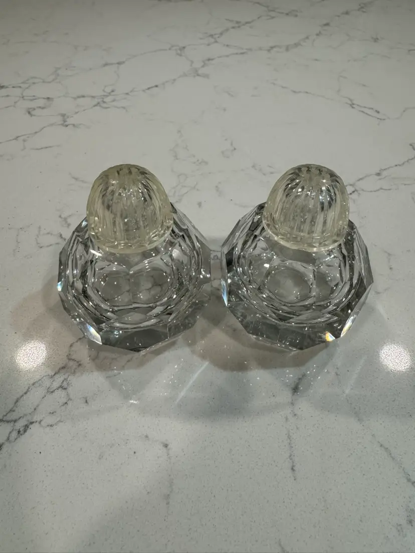 Charming set of vintage crystal salt and pepper shakers. Perfect for adding a touch of elegance to your dining table. Love the unique design!