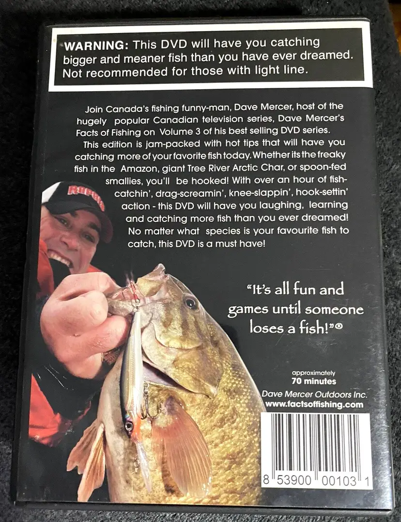 Returns Accepted: ReturnsNotAccepted Type: Movie Format: DVD Region Code: DVD: 1 (US, Canada...) Video Format: NTSC Sub-Genre: Fishing Director: Dave Mercer Country/Region of Manufacture: United States Movie/TV Title: Facts of Fishing Volume 3