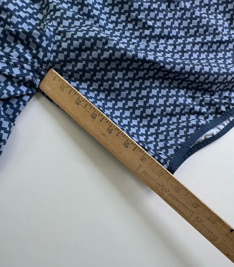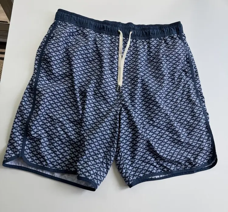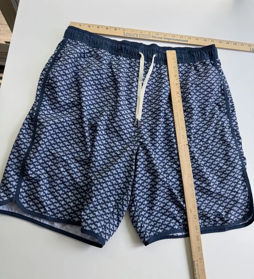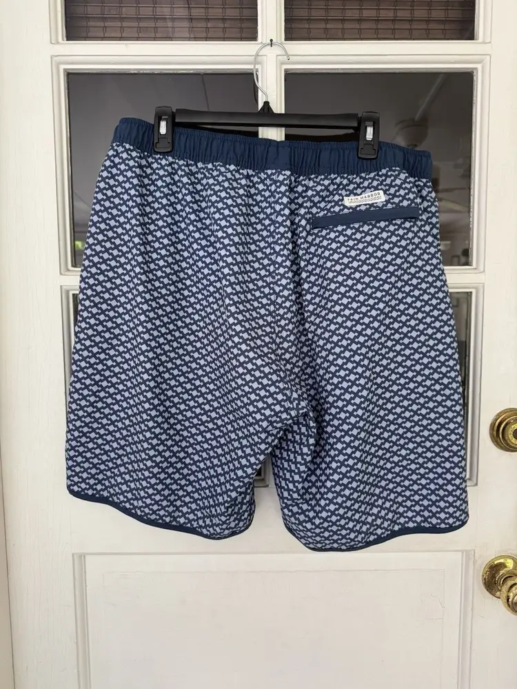 The Fair Harbor The Anchor Mist Seaview mens lined blue swim trunks shorts in size large are perfect for the beach enthusiast looking for a stylish and comfortable swimwear option. Made from a blend of polyester and spandex, these geometric blue shorts feature a classic swim bottom style with a lining for added comfort. The anchor and beach theme adds a fun and adventurous flair to the overall design, making them a great choice for recreational activities in the water.