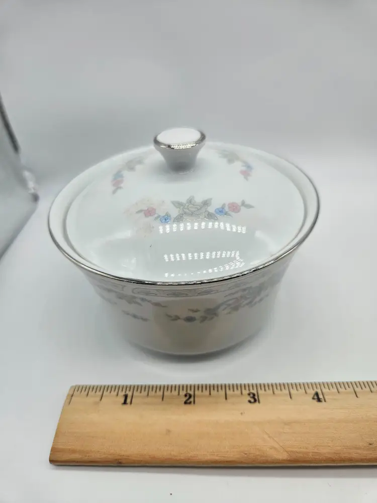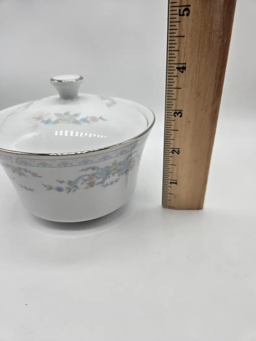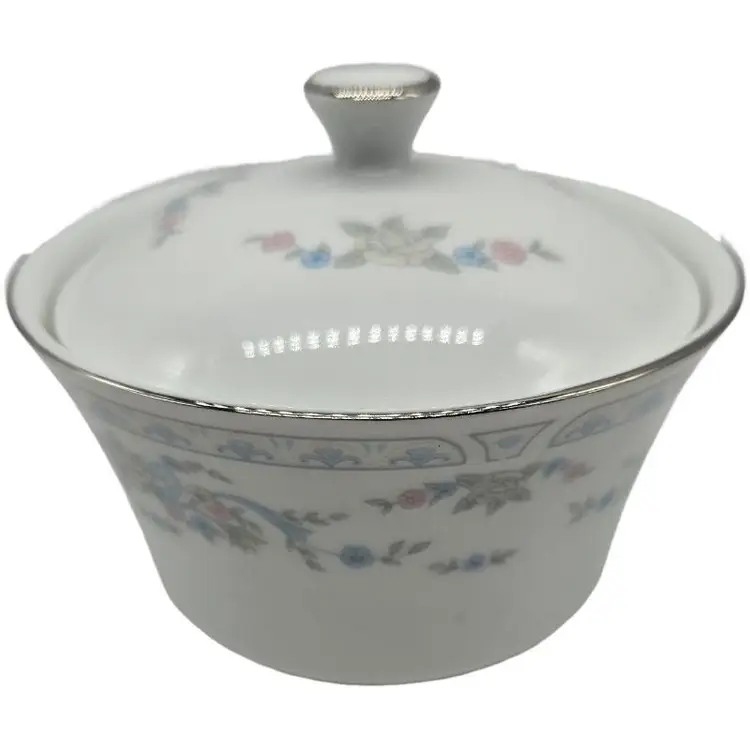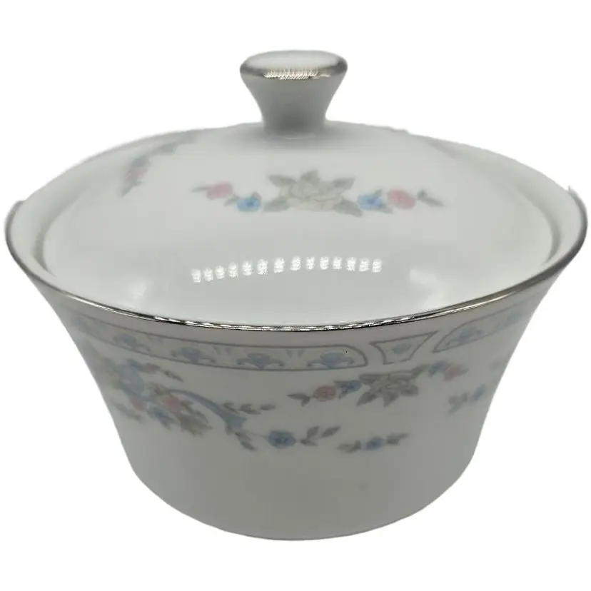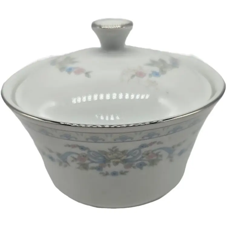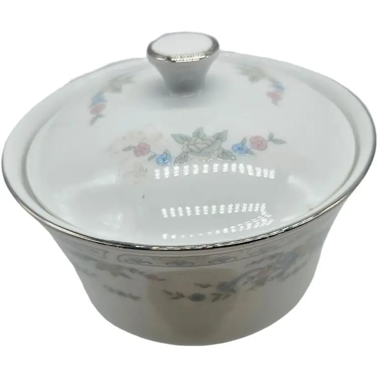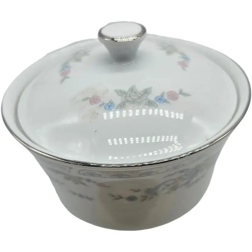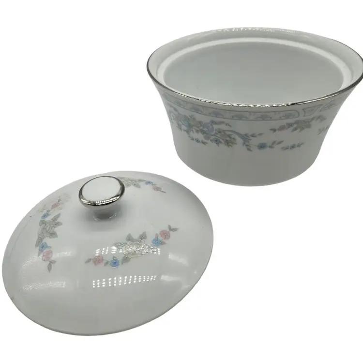 Add a touch of elegance to your dining table with this beautiful floral porcelain jar. Its delicate design and soft colors make it a perfect addition to any home.