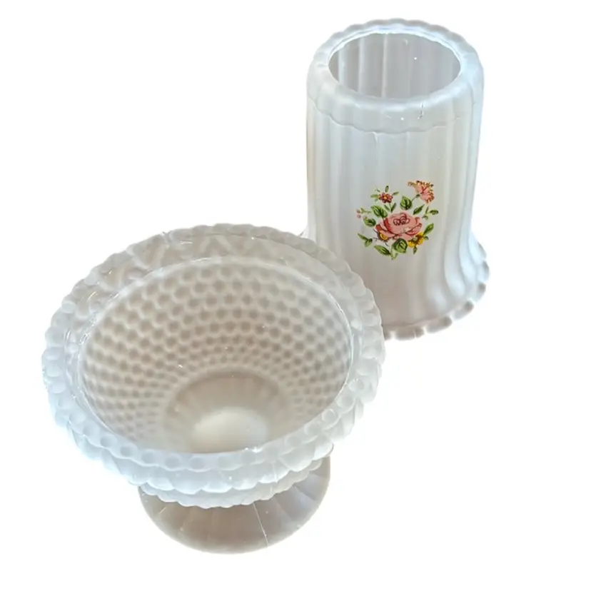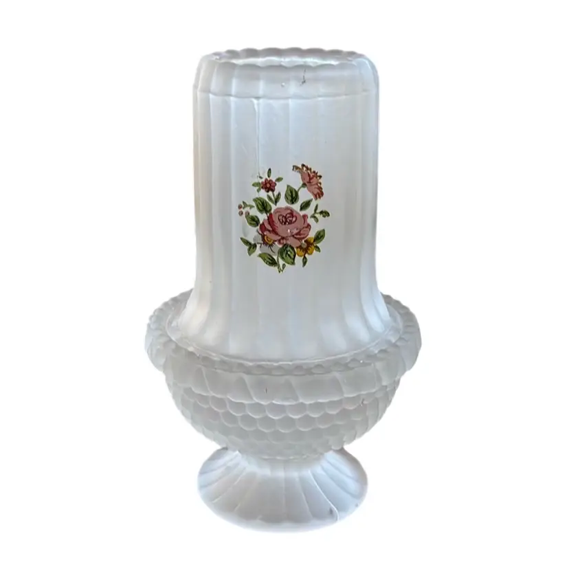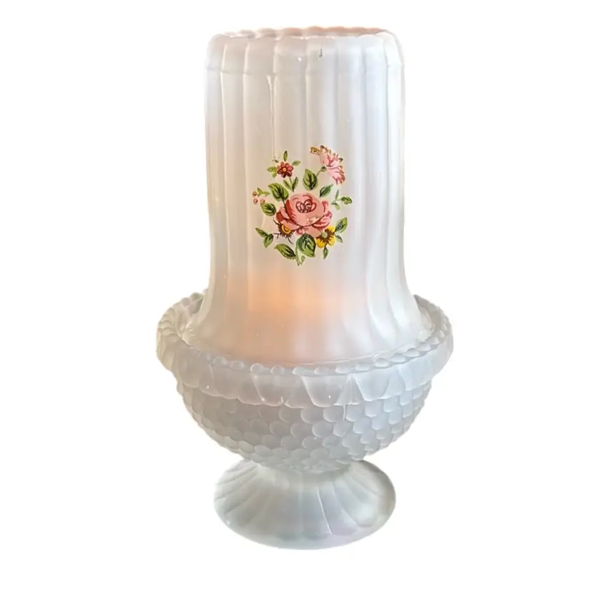 Frosted glass floral decal fairy light. Boho Granny Chic. No chips or cracks, imperfections during manufacturing. Boudoir lamp. Measures 6.5” tall.