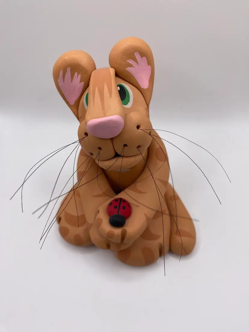 Adorable tiger with big whiskers. He sits approximately 5-1/2” tall and his base is 4-1/2” wide. He’s in good condition.