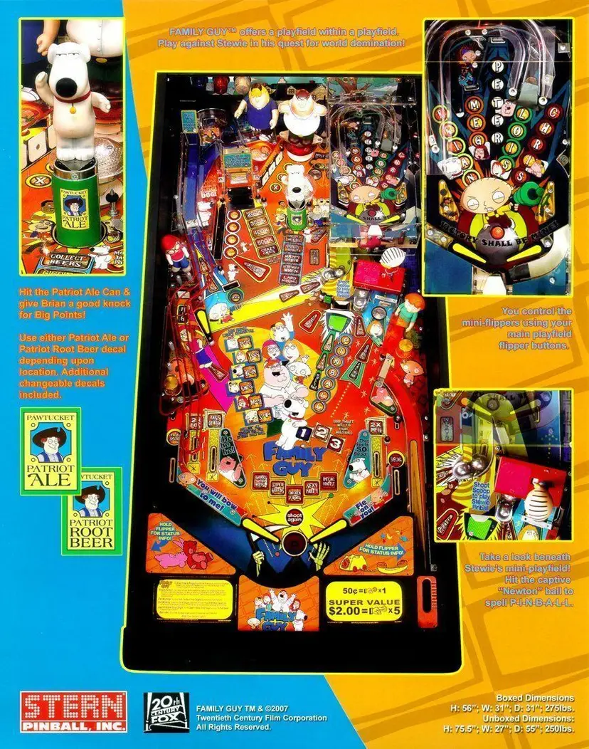 Model: Family Guy Original: Paper Advertising Flyer Pinball: Flyer Subject: TV Modified Item: No Country/Region of Manufacture: United States Theme: Cartoon Year: 2007 Brand: Stern Pinball