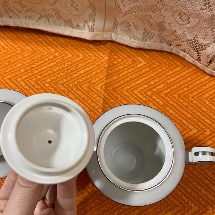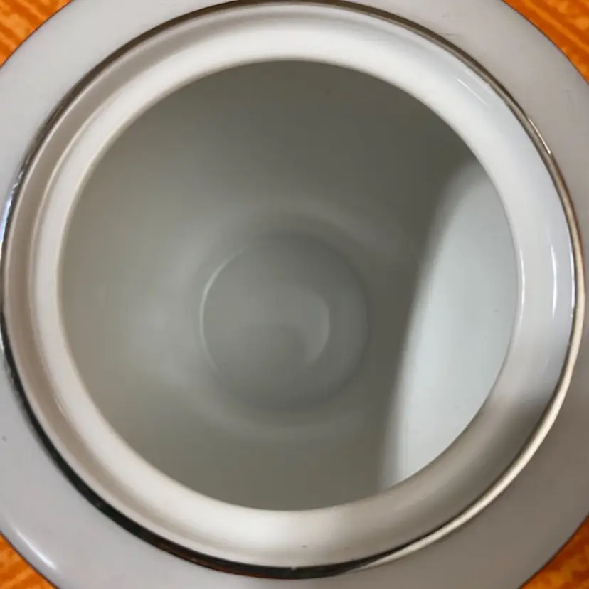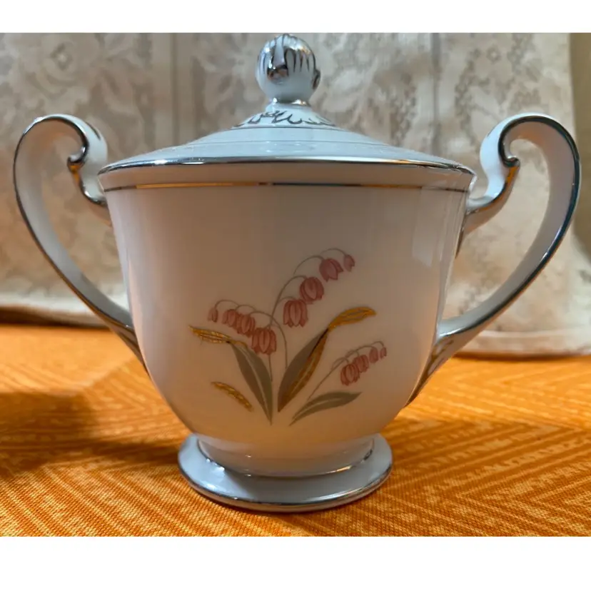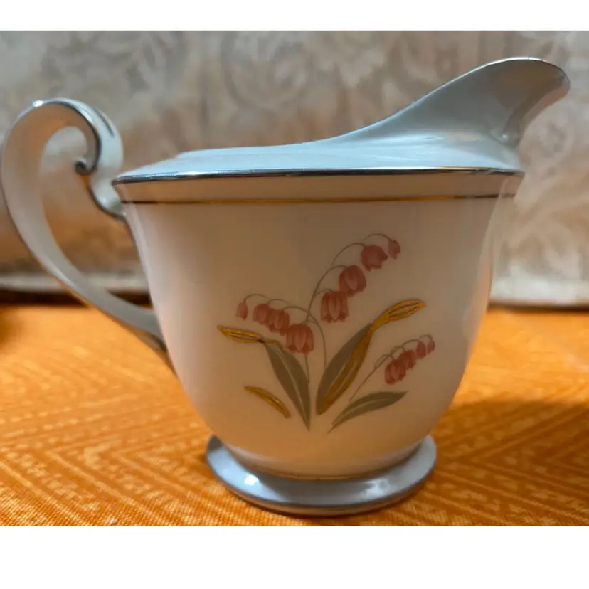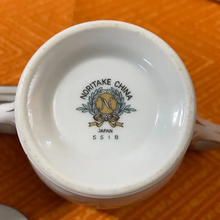 Creamer measures: 3 1/2” x 5”Sugar Jar measures: 4 1/2” x 5”. Overall good condition there is one area on the sugar jar that has a scratch through the silver leaf as seen in the last photo.
