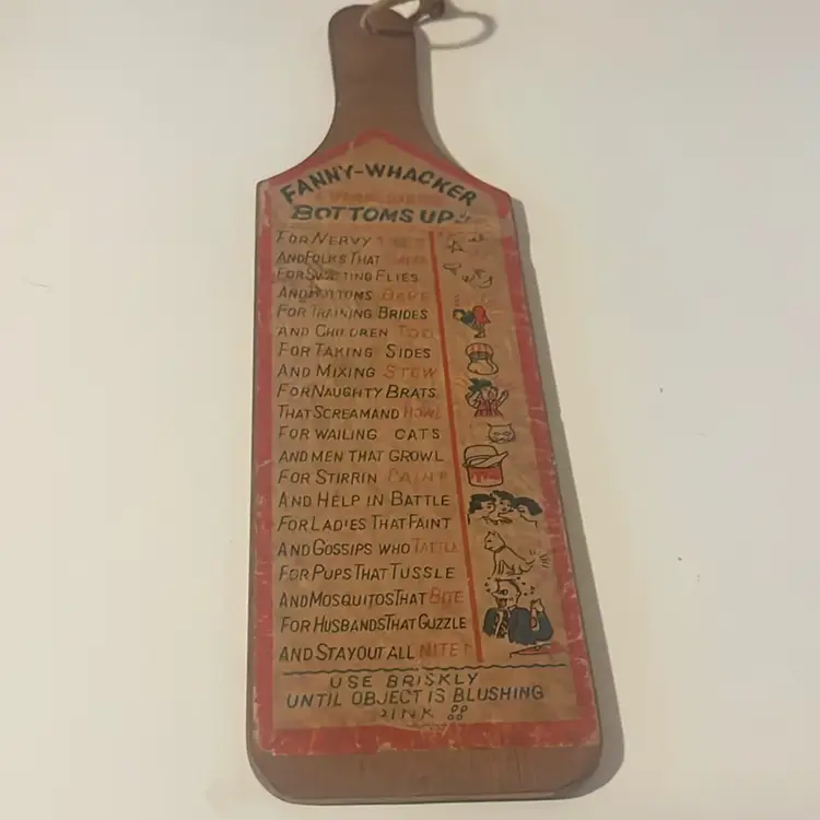 .Novelty wood Fanny wacker, vintage. Used 13”x 3.5” excluding leather strap