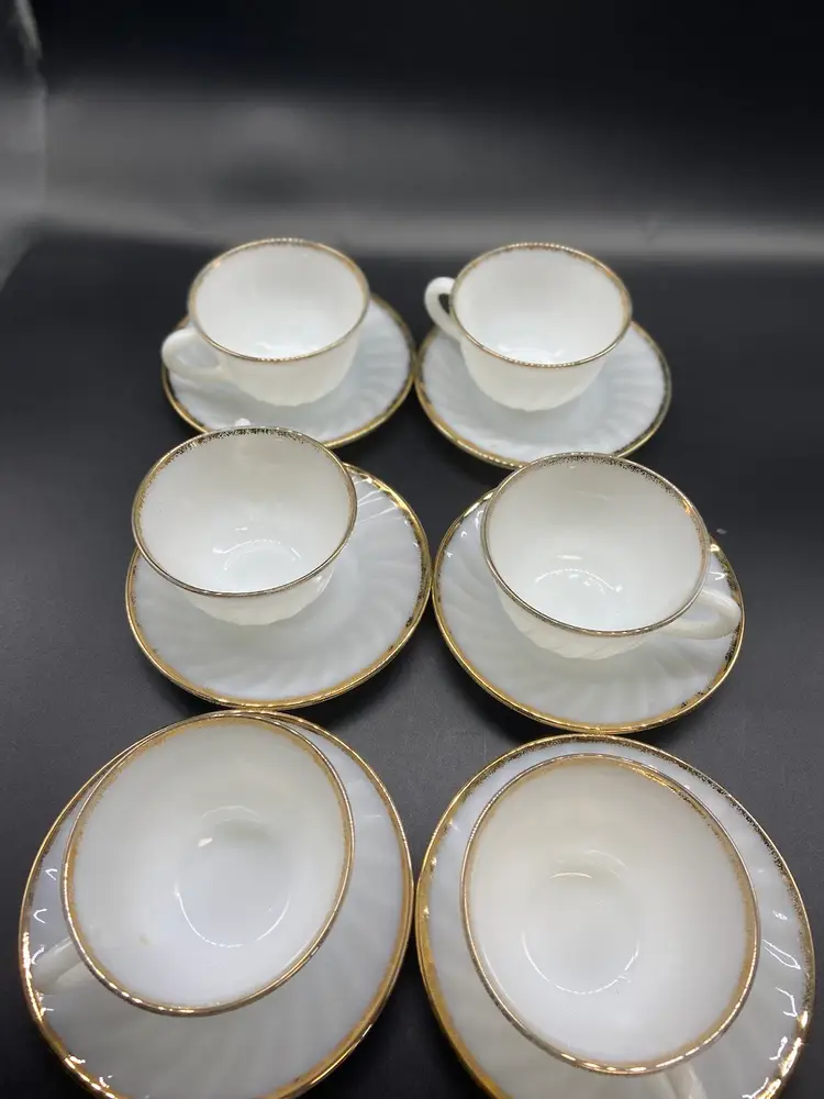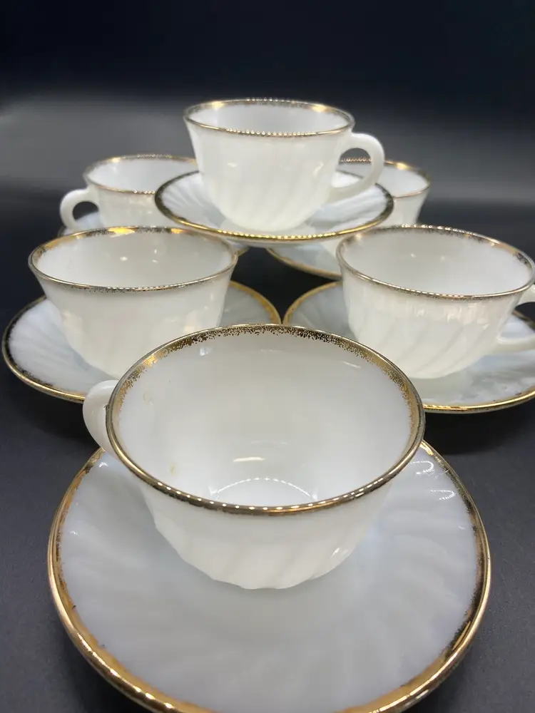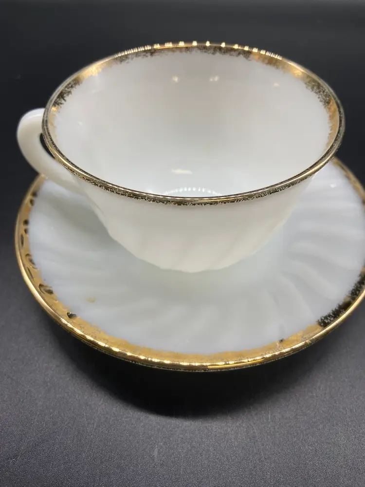 This is a fantastic, elegant set of fire king for your dining table or coffee and Bailey’s 5 inch saucer 2 3/4 inch cup