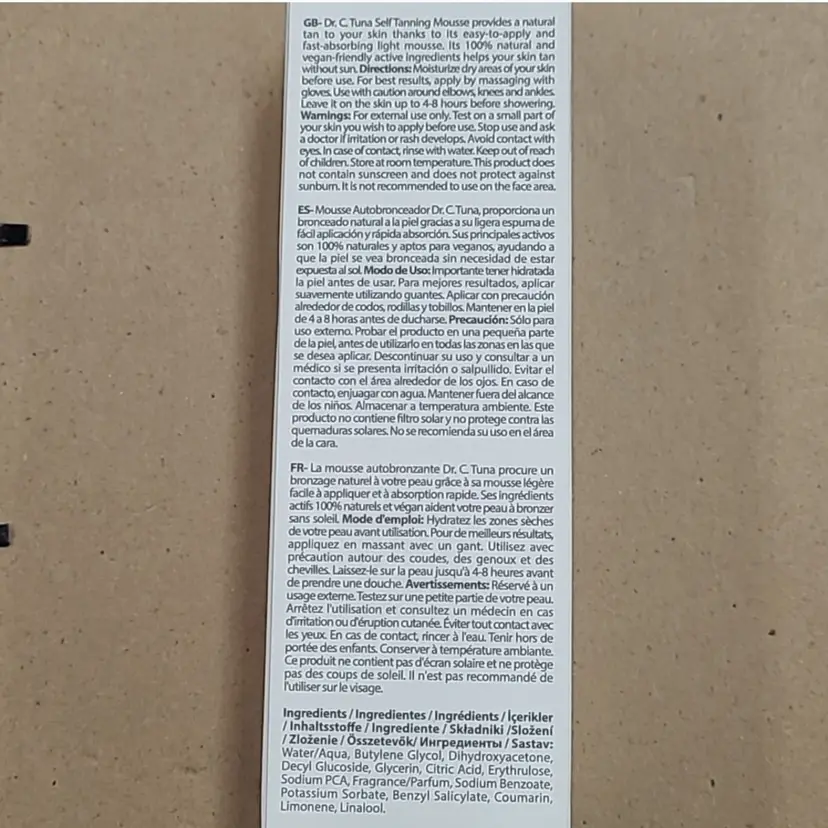DR.C. Tuna Self Tannning Mousse 150ml in excellent condition no damage still new in box. Pamper your skin with a sunless glow This lightweight tanning mousse is easy-to-apply and adapts to your own skin tone. It creates a luminous, long-lasting, natural golden glow. 100% vegan Bonus, the fresh coconut scent transports you right to the beach.