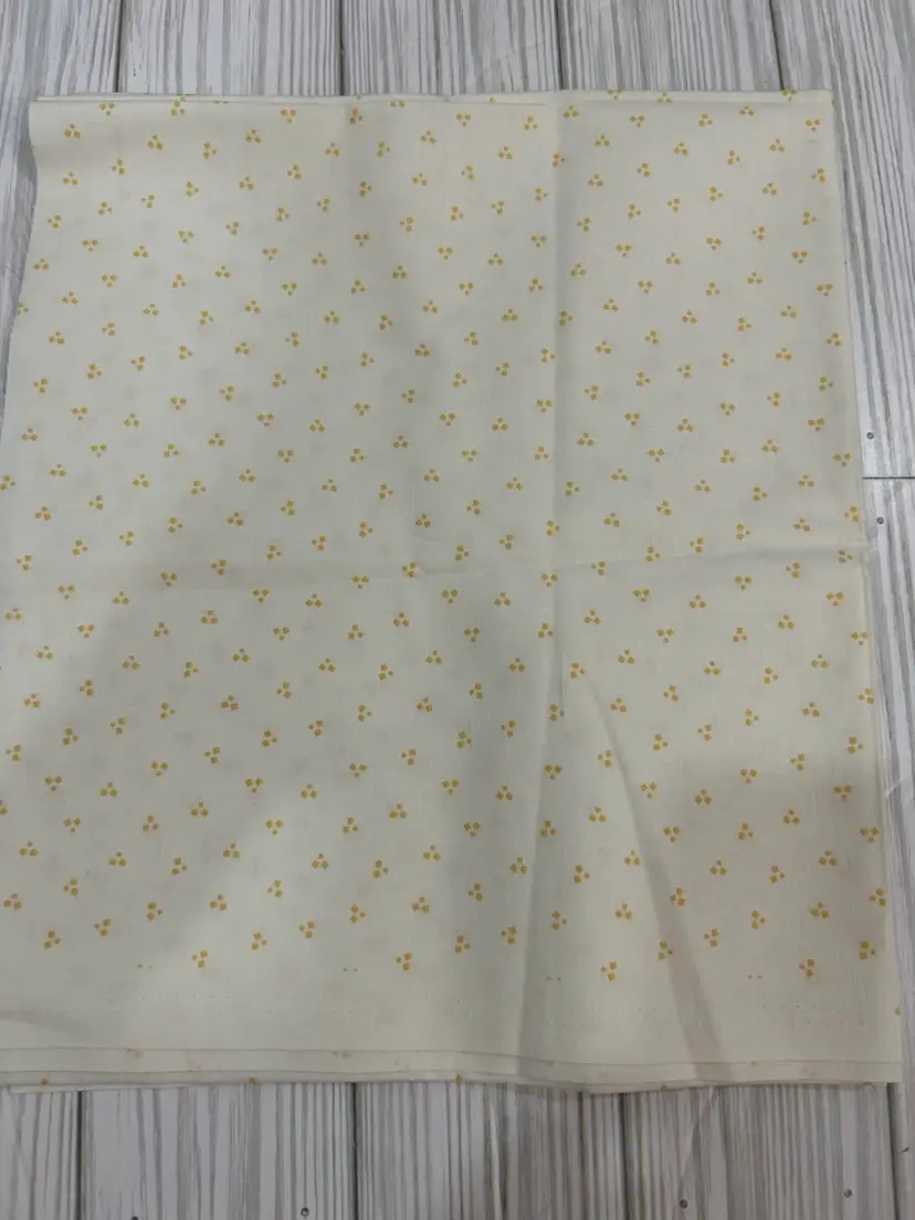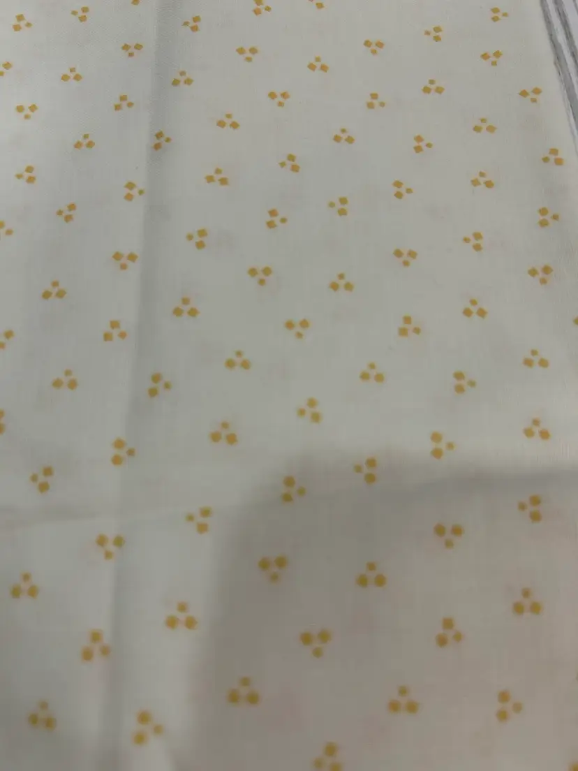 100% cotton yellow on very pale yellow. Beautiful fabric and very soft.