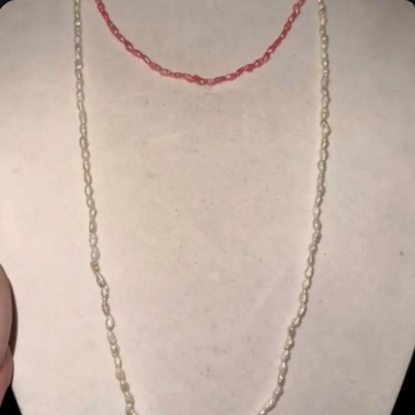 Faux pearl beads necklace (2 necklaces) One pink and one white Pullover 17” drop each