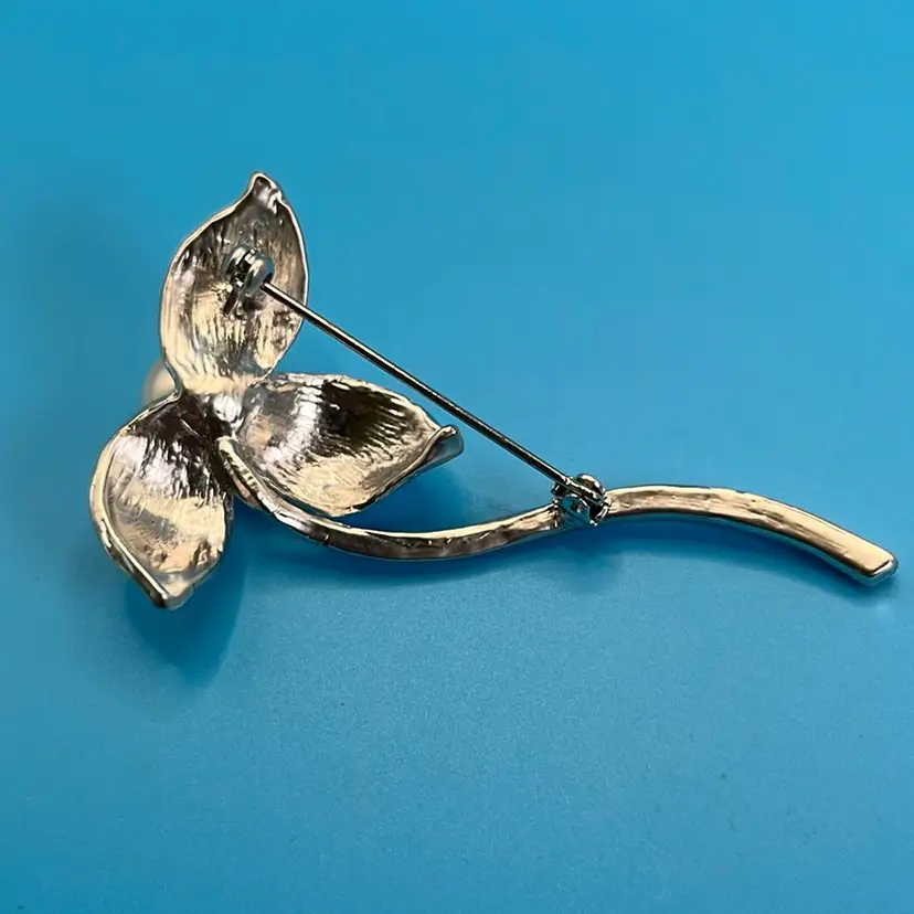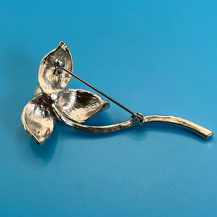 Faux Pearl Flower Brooch New Missing Ring Rhinestones