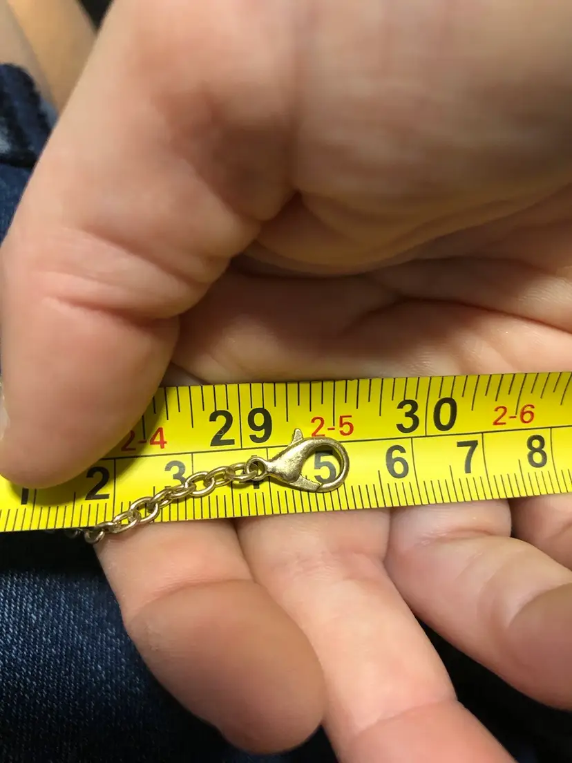 About 17 inches clasped and about 30 inches long unclasped Really cute