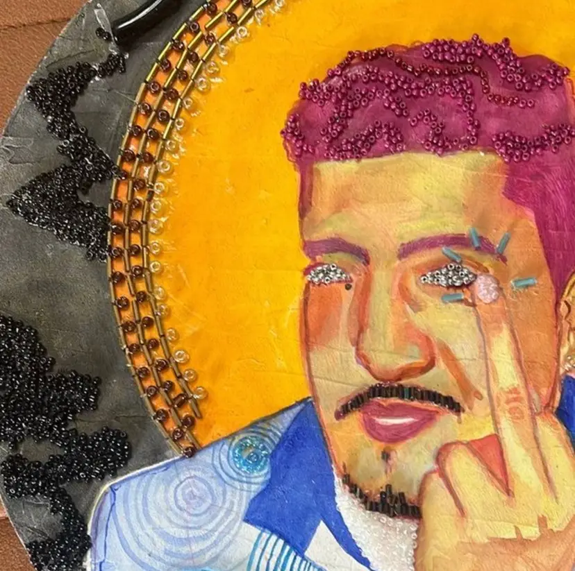 2024 Water color and beads on wood panel. 12”x12”