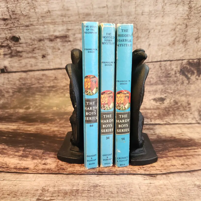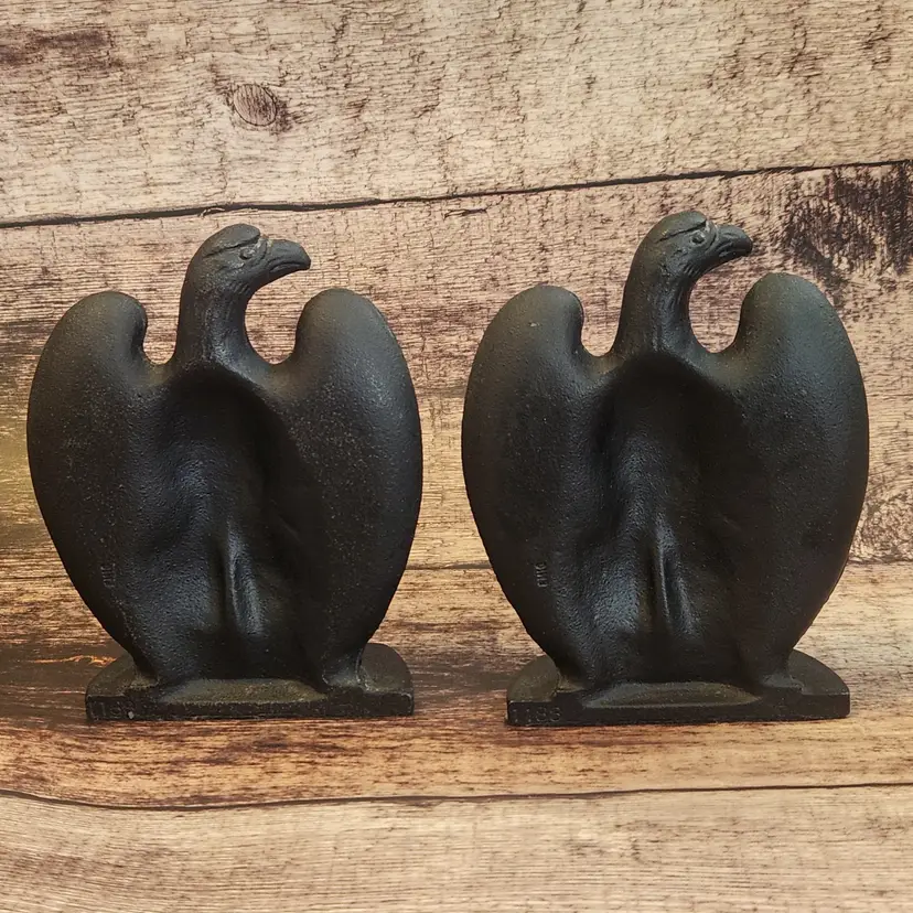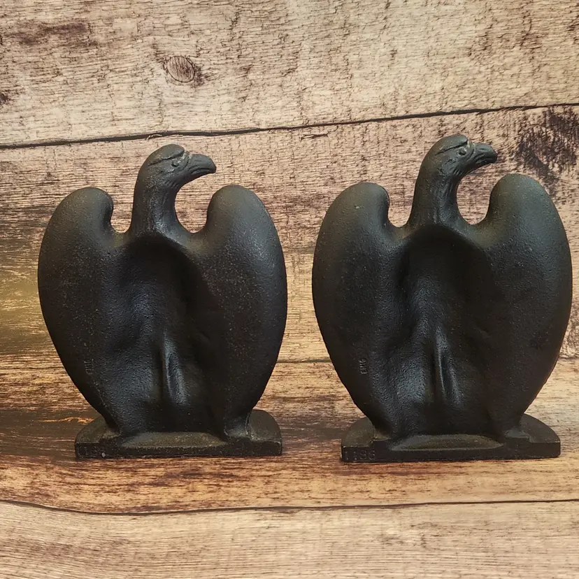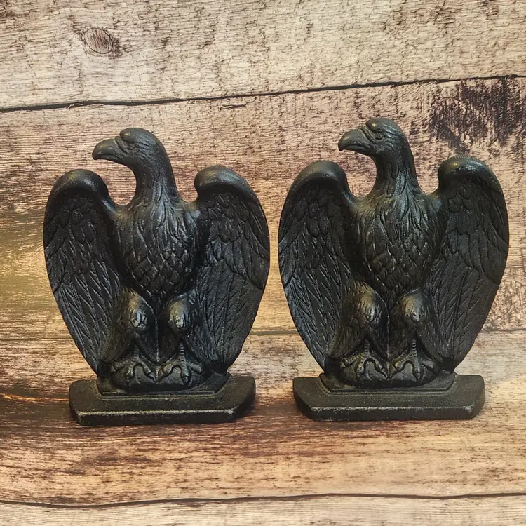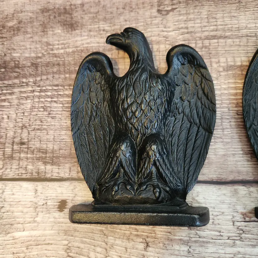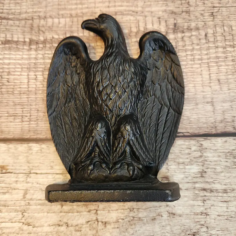 These are a set of 2 matching cast iron Federal Eagle door stops or bookends. They are very heavy - over 5# each - so they would work well for either purpose. Marked Robert Emig, he was a PA distributor who would contract with local makers to reproduce antique pieces he/his staff had found. Great for a farmhouse or Colonial country decor. This dates from the 1950s/60s. Great office decor gift for fathers day.