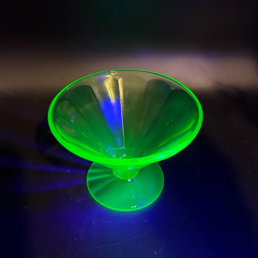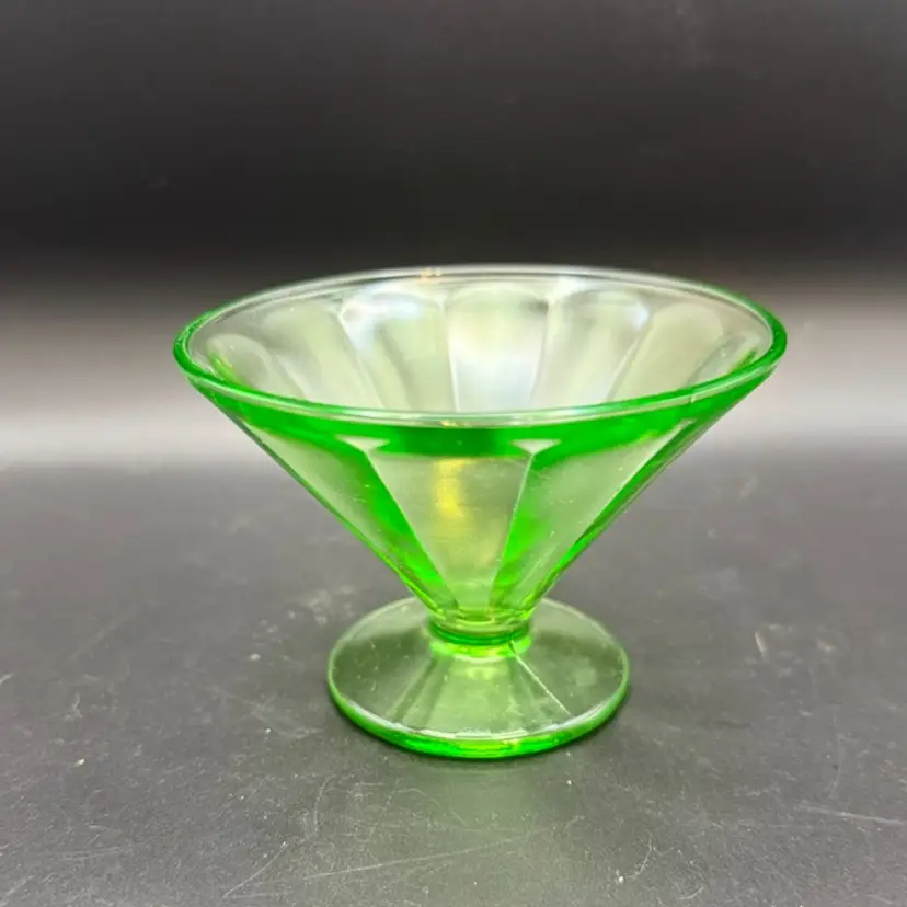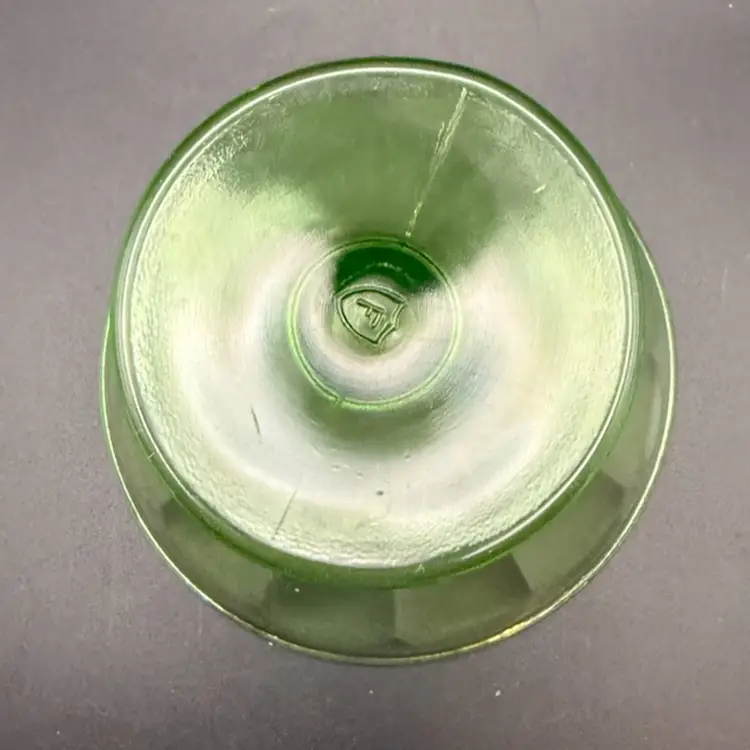 Federal Glass's uranium glass sherbet dishes and dessert bowls were popular items during the 1930s. The "F" mark on the bottom indicates that it is a genuine Federal Glass piece. These pieces are now collected for their historical significance and unique aesthetic appeal.