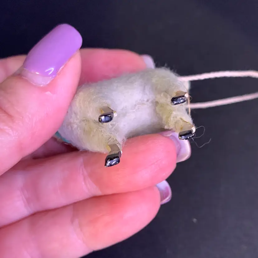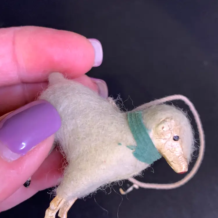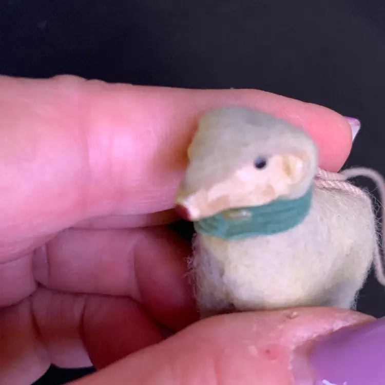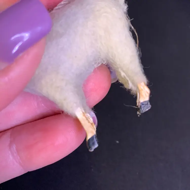Love it's tiny feet! No chips or cracks. Measures 2 inches across, 3/4 inches wide and 1 7/8 inches tall. Weighs 1 ounce. If the actual postage ends up being less than what you paid, you will be refunded for anything over one dollar.